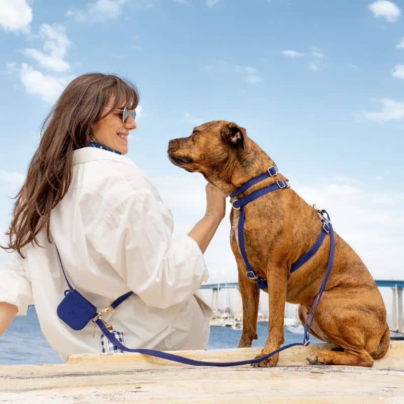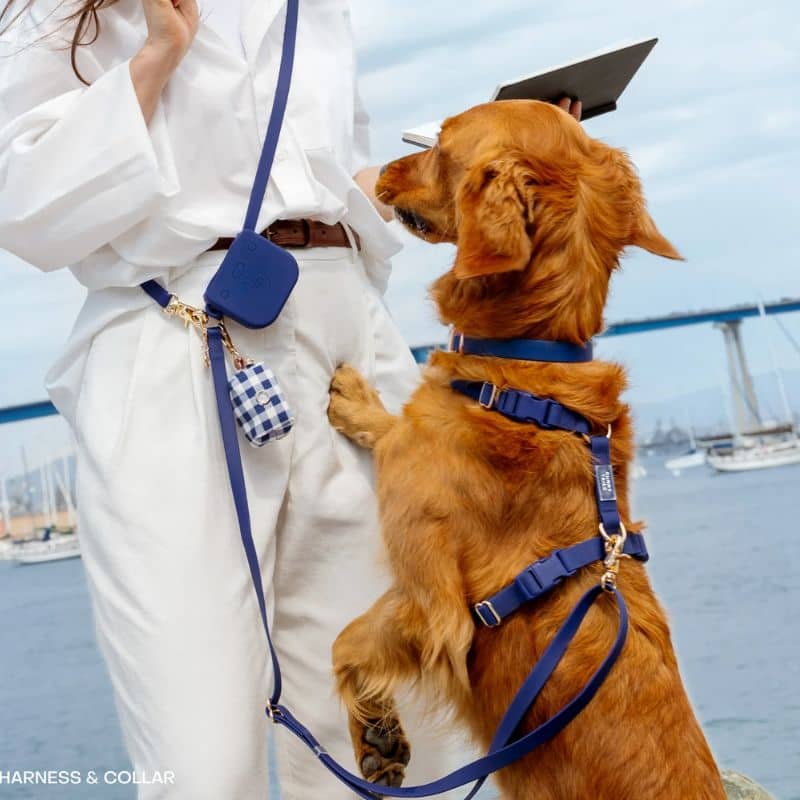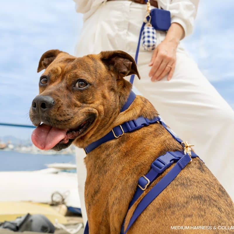 Le harnais pour chien Cloud lite « Signature Navy » de la marque américaine Shop Sunny Tails vous permet de promener votre chien peu importe la météo grâce à sa matière imperméable. Il est confectionné à partir d’une sangle 100% vegan enduite de PVC – une matière plus durable que le cuir et similaire au biothane – et est également résistant.