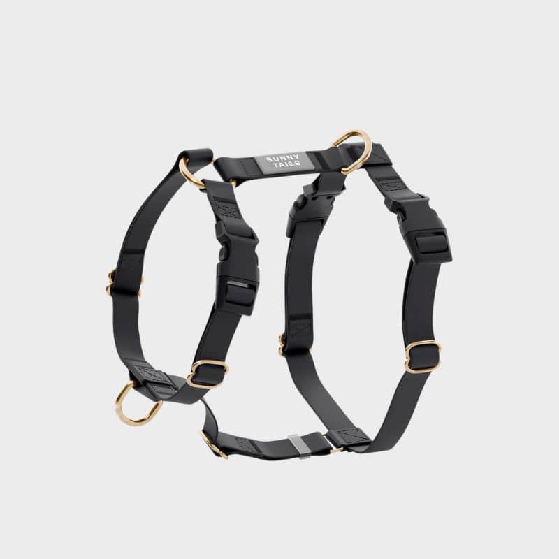Nouveau design pour le harnais pour chien Cloud lite « Ember black«  de la marque américaine Shop Sunny Tails qui vous permet de promener votre chien peu importe la météo grâce à sa matière imperméable. Il est confectionné à partir d’une sangle 100% vegan enduite de PVC – une matière plus durable que le cuir et similaire au biothane – et est également résistant.