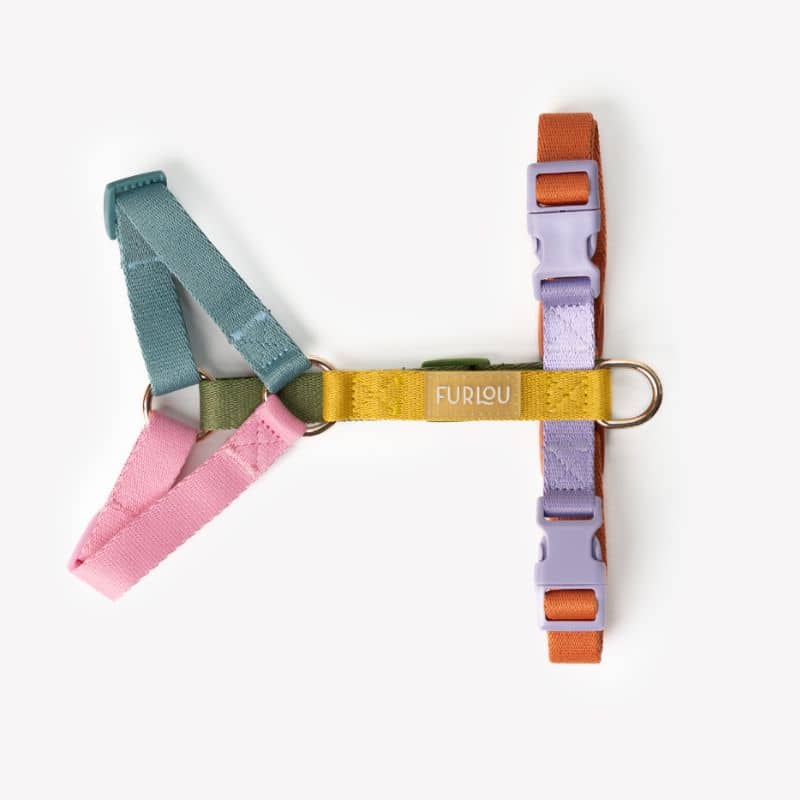 Son mélange de couleurs vives et pastels associé aux anneaux dorés font de cet harnais en H un must-have de la garde robe de votre poilu ! Un design tendance que l’on adore !