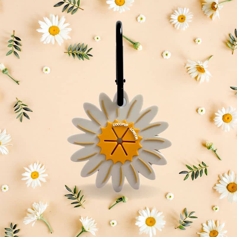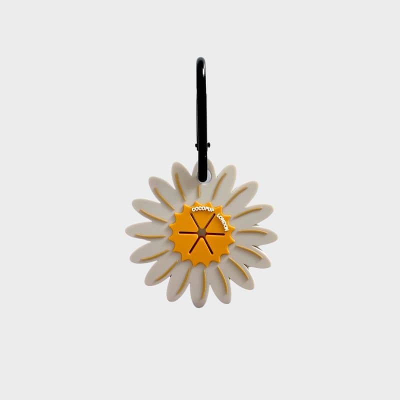 Rares sont les fois où votre chien fait ses besoins juste devant une poubelle : cela serait trop beau ! Pour éviter de vous balader avec la crotte de votre poilu dans vos mains, cette accroche sac à déjection « marguerite daisy » de Cocopup London est parfaite !
