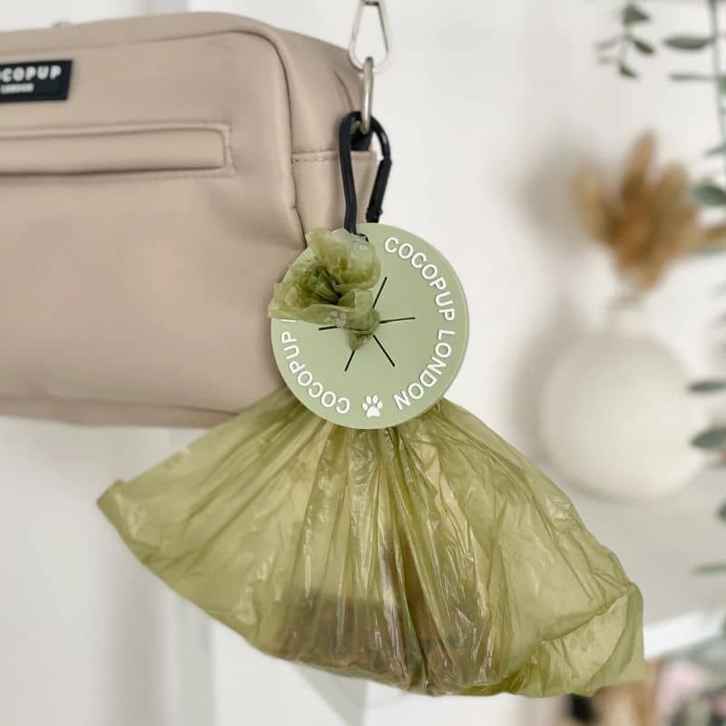 Rares sont les fois où votre chien fait ses besoins juste devant une poubelle : cela serait trop beau ! Pour éviter de vous balader avec la crotte de votre poilu dans vos mains, cette accroche sac à déjection « vert matcha » de Cocopup London est parfaite !