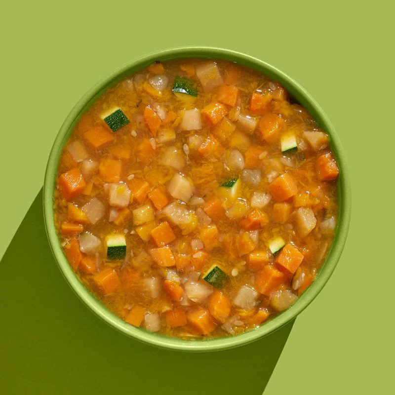 Composition : Courgette 17,5 %, rutabaga 17,5 %, carotte 17,5 %, potiron 17 %