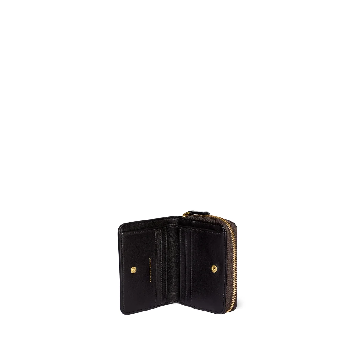 Portefeuille. Fermeture entièrement zippée. Compartiments monnaie avec une fermeture zippée adossé d’un rangement pour les cartes fermé à l’aide d’une pression.