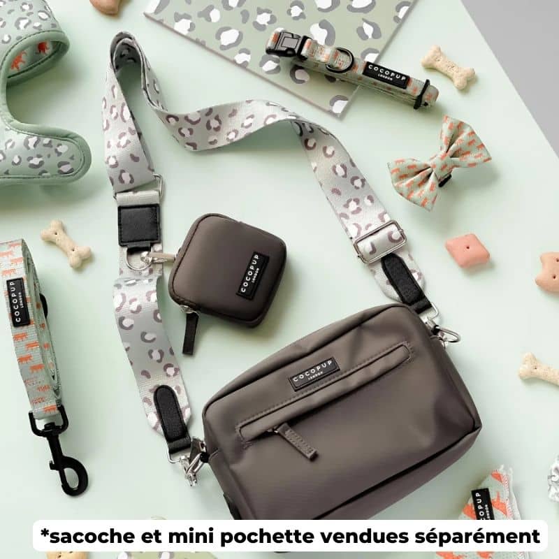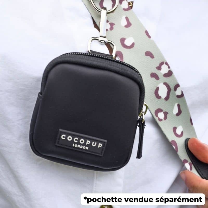 L’anse pour sacoche « léopard sauge » s’accordera parfaitement avec le Dog Walking Bag – le produit best seller de Cocopup London disponible en plusieurs coloris ! L’anneau de l’anse situé sur le devant vous permettra de clipser la mini pochette – également disponible en plusieurs coloris.
