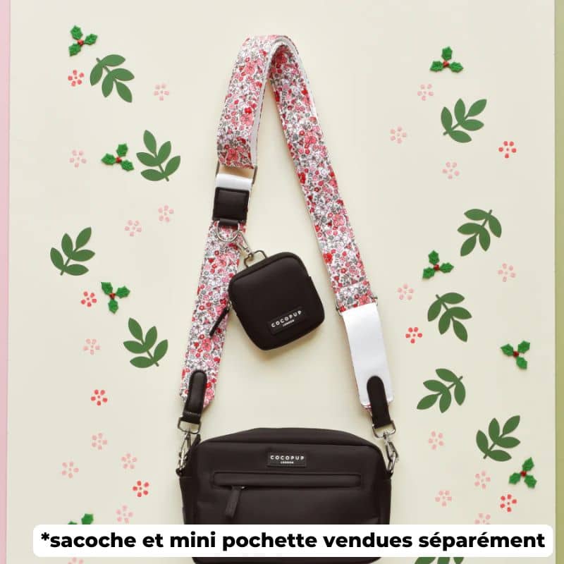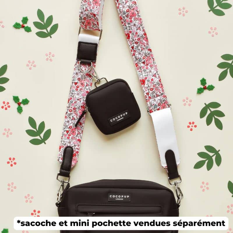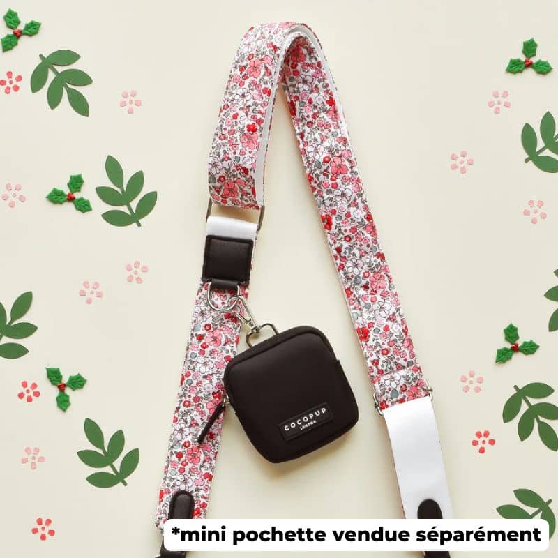 L’anse pour sacoche « quilted cute flowers » avec des fleurs rouge et rose sur fond de tissu matelassé blanc s’accordera parfaitement avec le Dog Walking Bag – le produit best seller de Cocopup London disponible en plusieurs coloris ! L’anneau de l’anse situé sur le devant vous permettra de clipser la mini pochette – également disponible en plusieurs coloris.