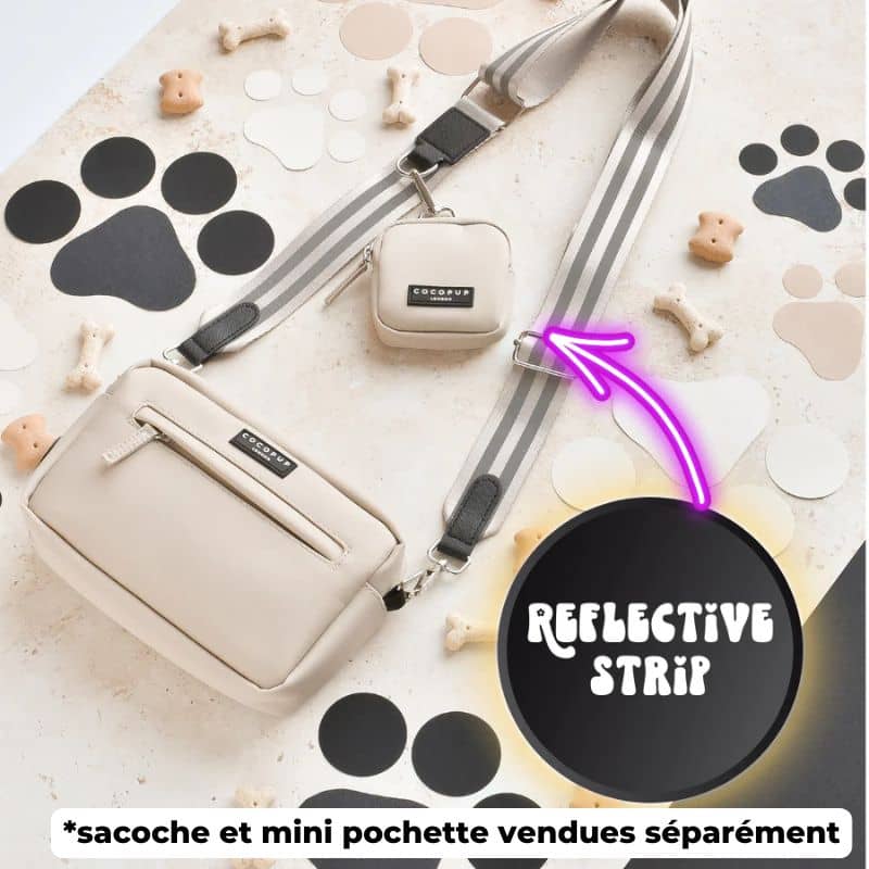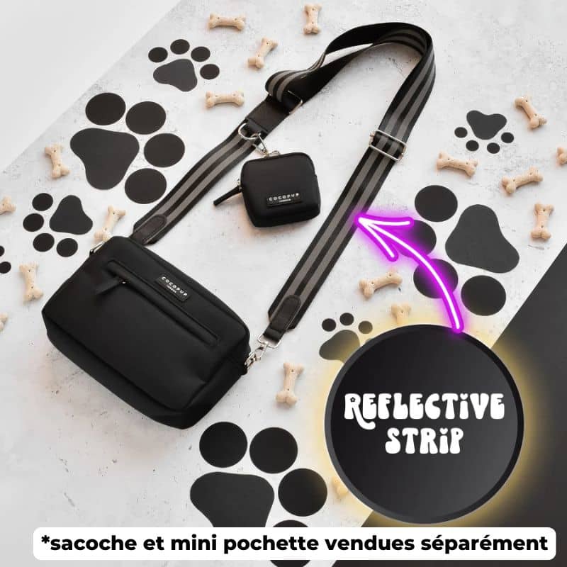 L’anse pour sacoche « réfléchissante » s’accordera parfaitement avec le Dog Walking Bag – le produit best seller de Cocopup London disponible en plusieurs coloris ! L’anneau de l’anse situé sur le devant vous permettra de clipser la mini pochette – également disponible en plusieurs coloris. Avec ses bandes réfléchissantes, soyez visible de nuit (ou tôt le matin) lors de vos promenades canines.