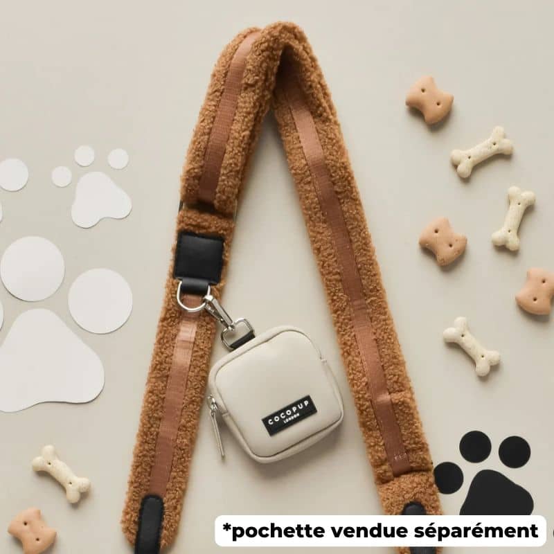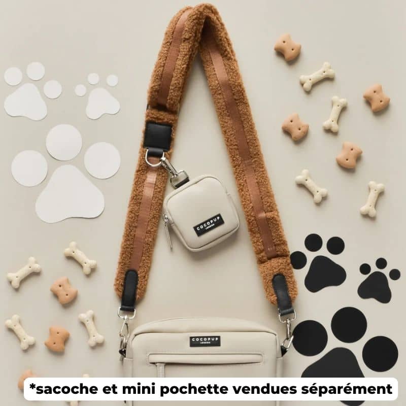 L’anse pour sacoche « teddy caramel Paddington » s’accordera parfaitement avec le Dog Walking Bag – le produit best seller de Cocopup London disponible en plusieurs coloris ! L’anneau de l’anse situé sur le devant vous permettra de clipser la mini pochette – également disponible en plusieurs coloris.