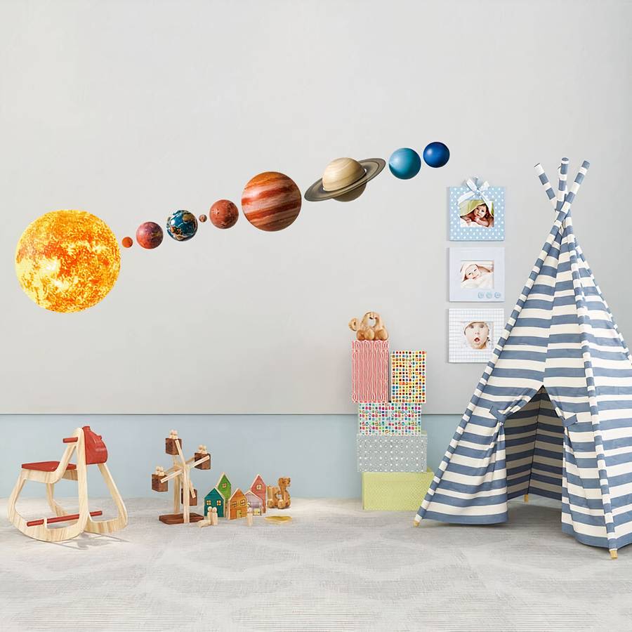 Pour une rénovation de décoration originale de la chambre de votre bébé, optez pour cet autocollant mural en forme de système solaire. Il est fait en PVC de très bonne qualité et durable. Cet autocollant mural en motif système solaire fera rêver votre petit loulou. Cet autocollant mural est un excellent moyen d’ajouter une touche de style et de décoration à votre maison ou à votre bureau.
