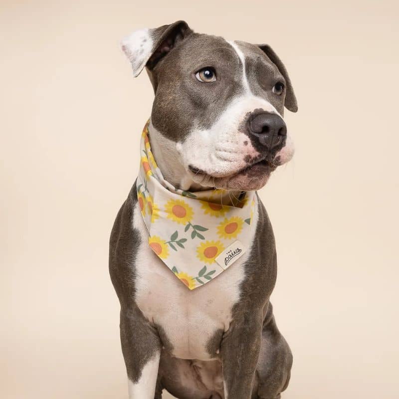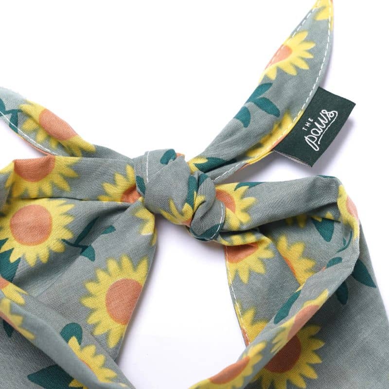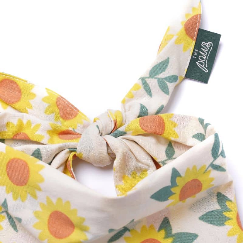 Avec le bandana pour chien motif tournesol “Cullipher” en blanc ou « Cromwell » en vert de la marque The Paws, votre compagnon à quatre pattes sera le plus branché des toutous du quartier avec ce motif tournesol disponible en 2 couleurs : blanc ou vert 🌻! Confectionné à 100% avec du coton et à la main, il apportera une touche mode et stylée à votre chien.