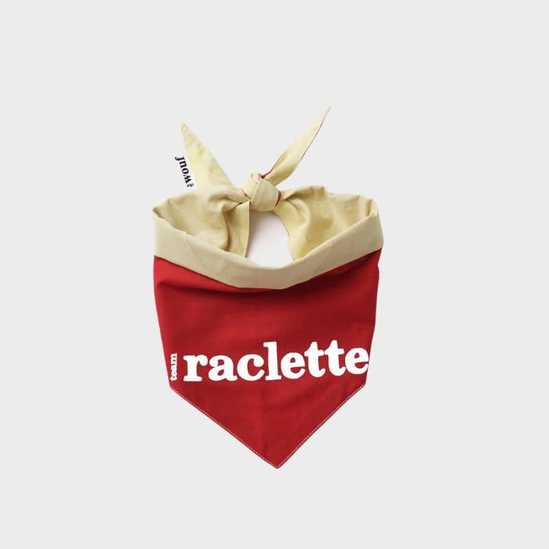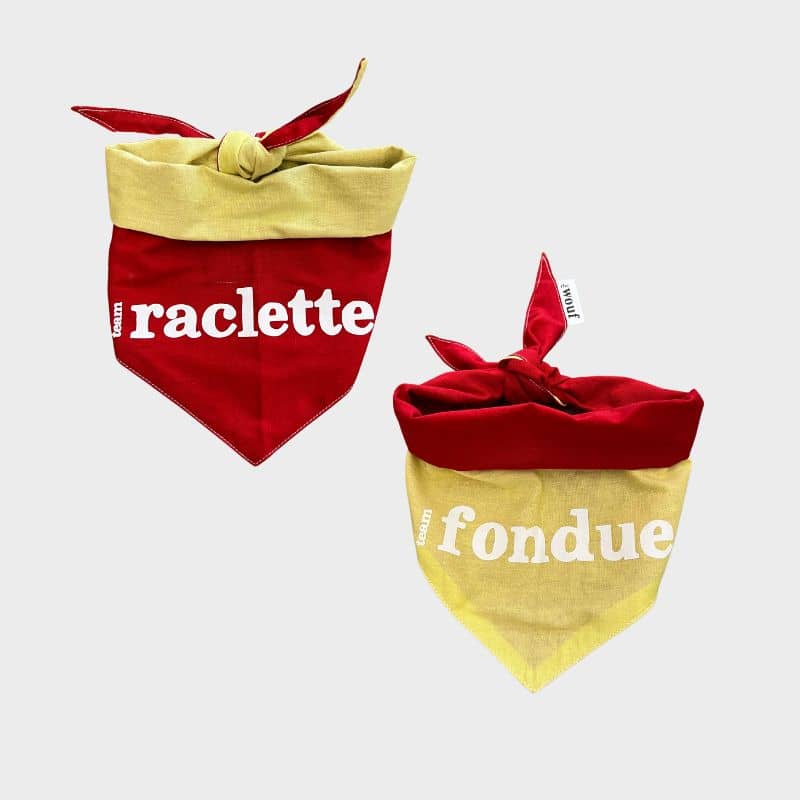 Le bandana pour chien “souvenir d’Annecy * Team raclette ou fondue” est réversible : un côté rouge pour la team raclette et un côté jaune pour la team fondue. L’avantage ? Pas besoin de choisir votre camp !