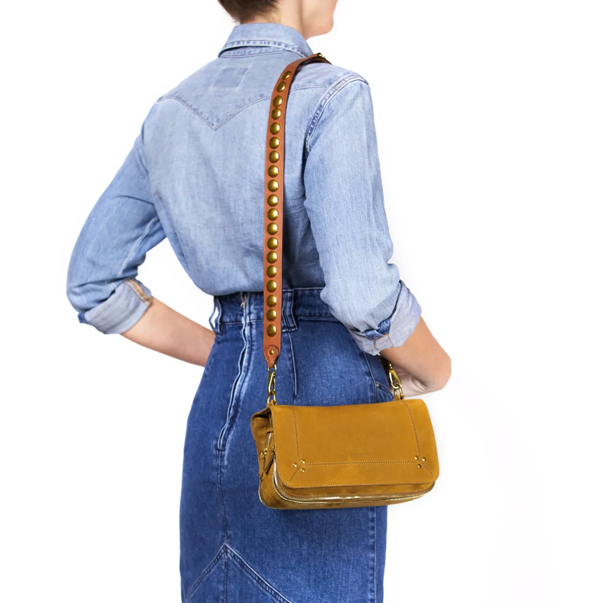 Bandoulière en cuir clouté, amovible grâce aux deux mousquetons. Peut être associée aux sacs Bobi, Bobi S, Igor, Billy M, Billy Nano, Stan Panier M, Lulu M, Pépito (S,M&L), Roger et Ben S. Bandouliere 100% vachette Longueur : 90 cm