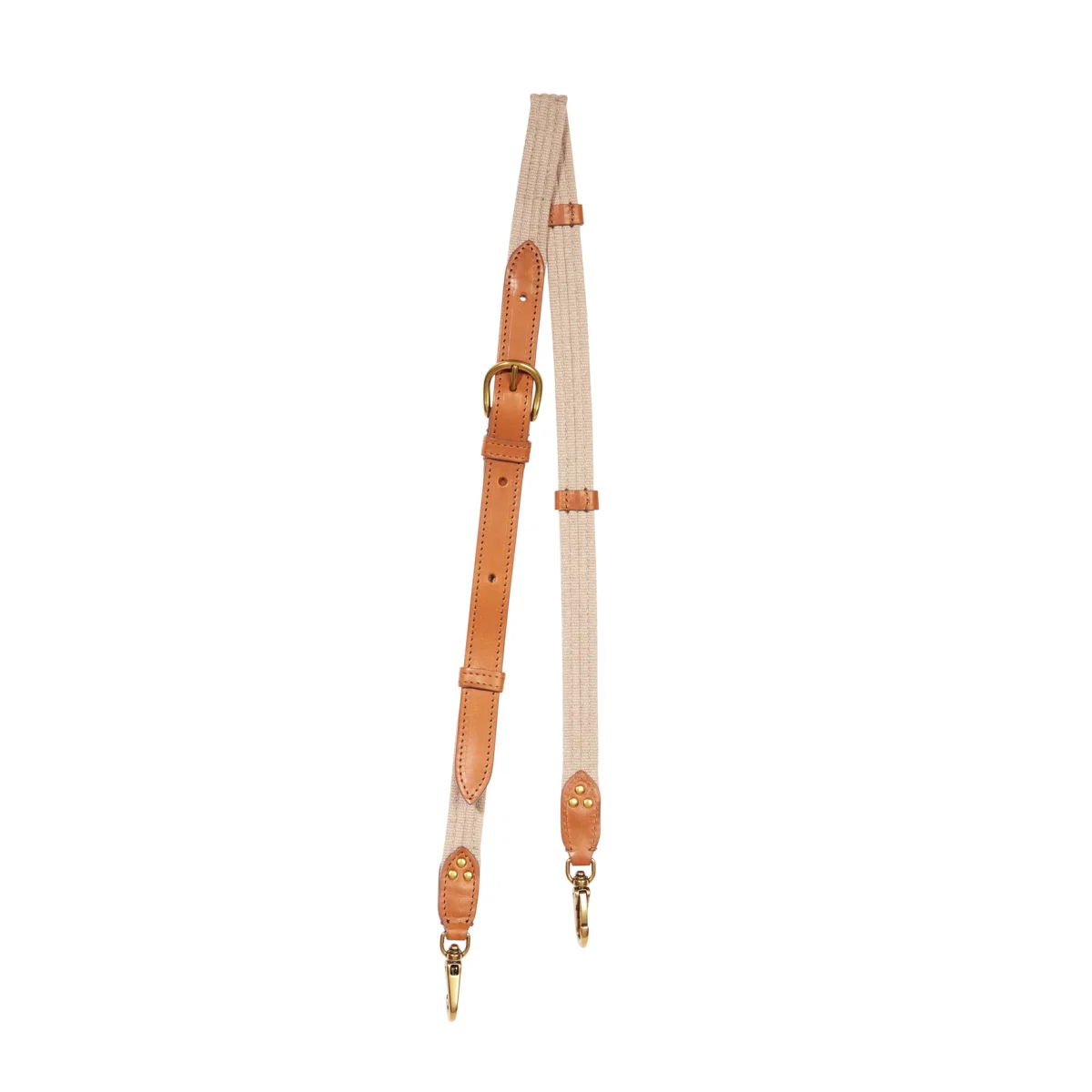 Bandoulière réglable en sangle de coton garnie de cuir, amovible grâce aux deux mousquetons. Peut être associée aux sacs Bobi, Lulu, Igor…