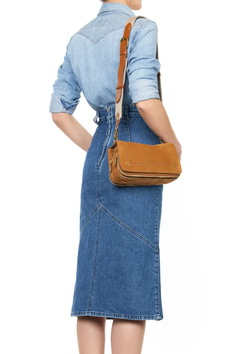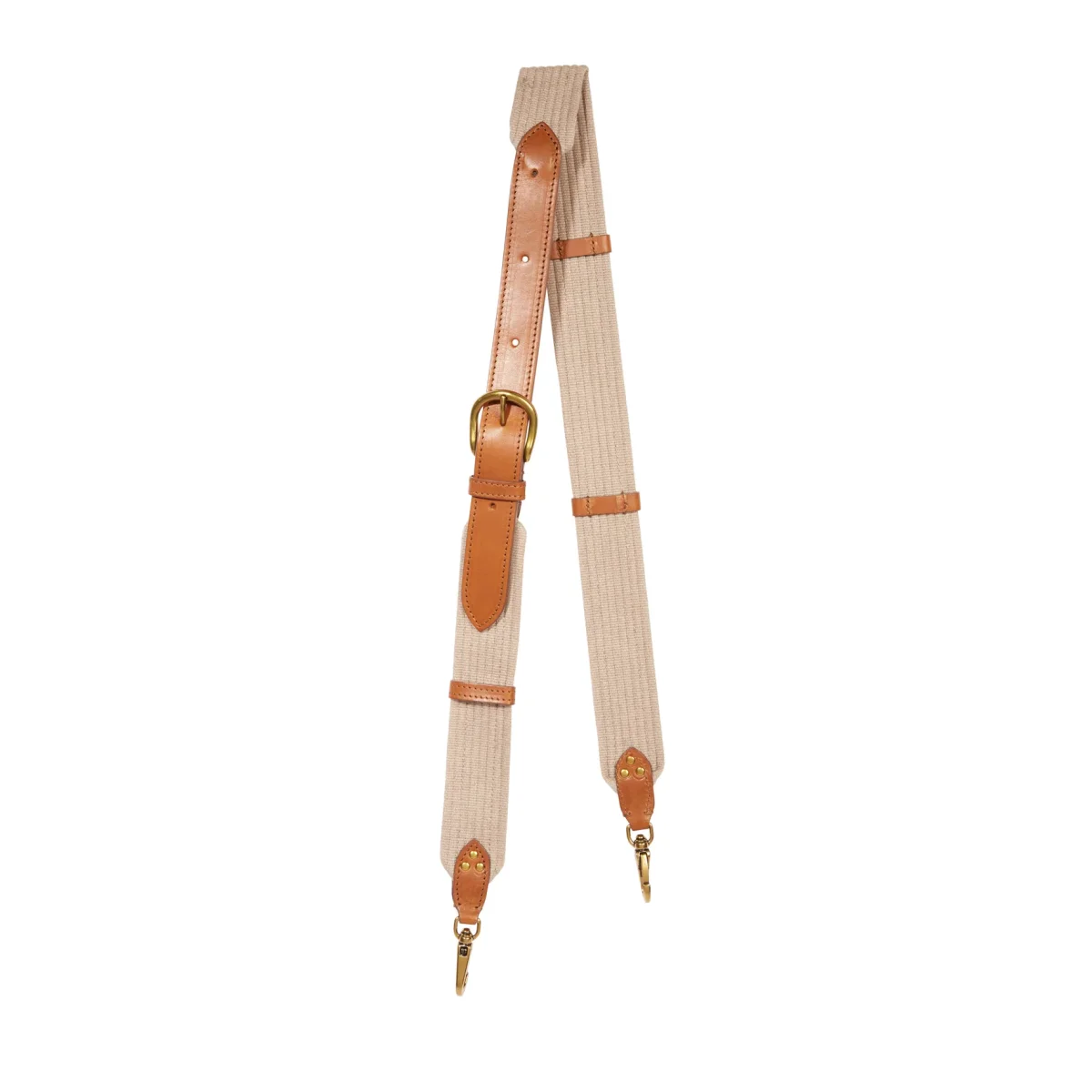Bandoulière réglable en sangle de coton garnie de cuir, amovible grâce aux deux mousquetons. Peut être associée aux sacs Bobi, Lulu, Igor…