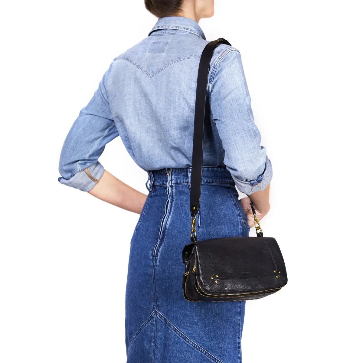 Bandoulière simple Vachette Noir Brass