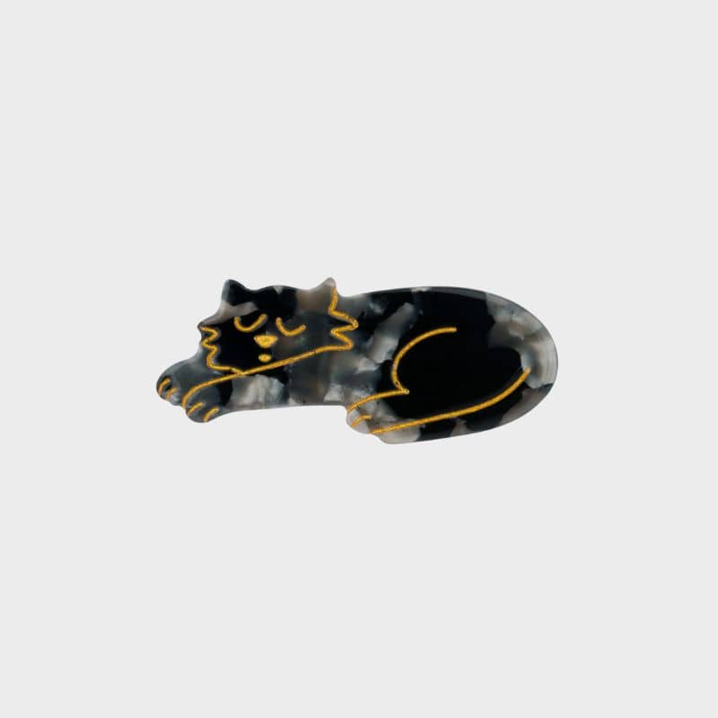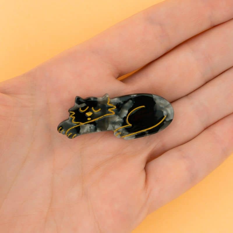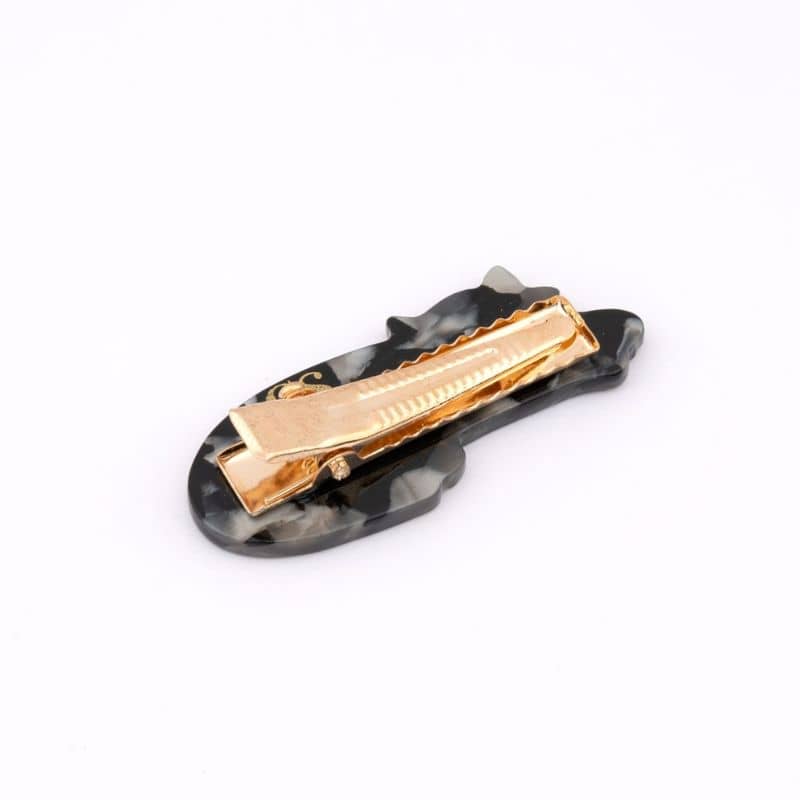 Avec ses détails dorés et son coloris noir nacré, cette petite pince à cheveux originale en forme de chat donnera du peps à vos coiffures.