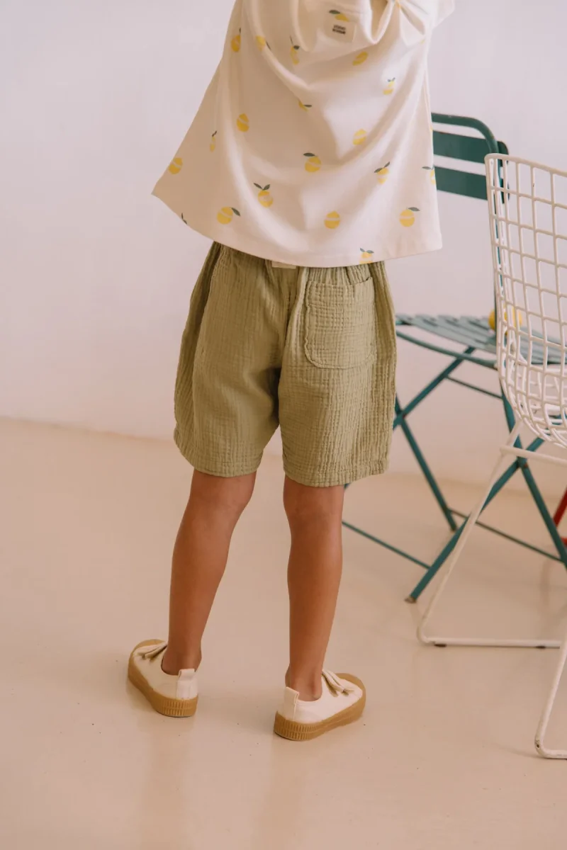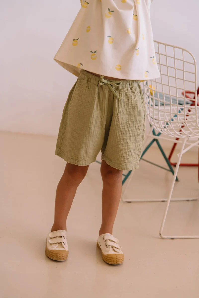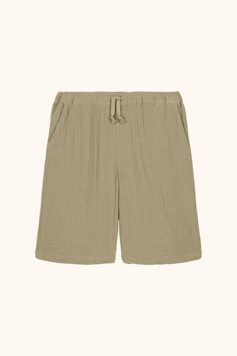 Bermuda en gaze de coton froissé biologique.Ceinture élastiquée confortable pouvant être ajustée grâce au cordon de serrage.Poche arrière et étiquette Studio Bohème décorative au dos du bermuda.Cet article est « garment dyed », cela signifie qu’il est teint une fois que la pièce est confectionnée. Cette teinture spécifique apporte des aspérités et un aspect vintage aux couleurs. […]
