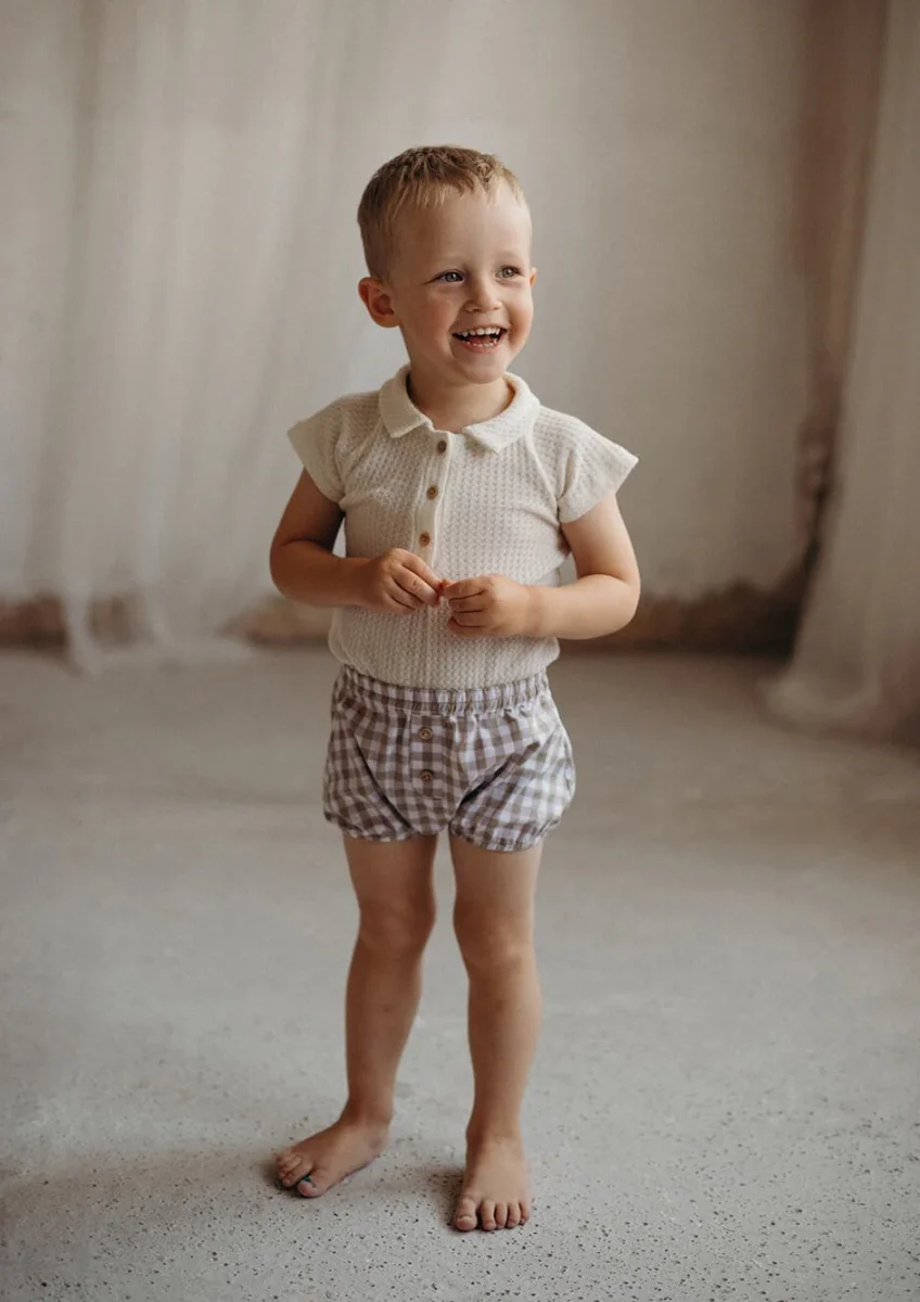 Bloomer vichy beige en coton bio avec taille et pattes élastiques. 2 petits boutons en bois sur le devant pour encore plus de charme. Pour une tenue complète : à associer avec le béguin Bobbie et le body en maille Roy par exemple. Petit look à croquer on vous le garantit 😉 Et pour les […]