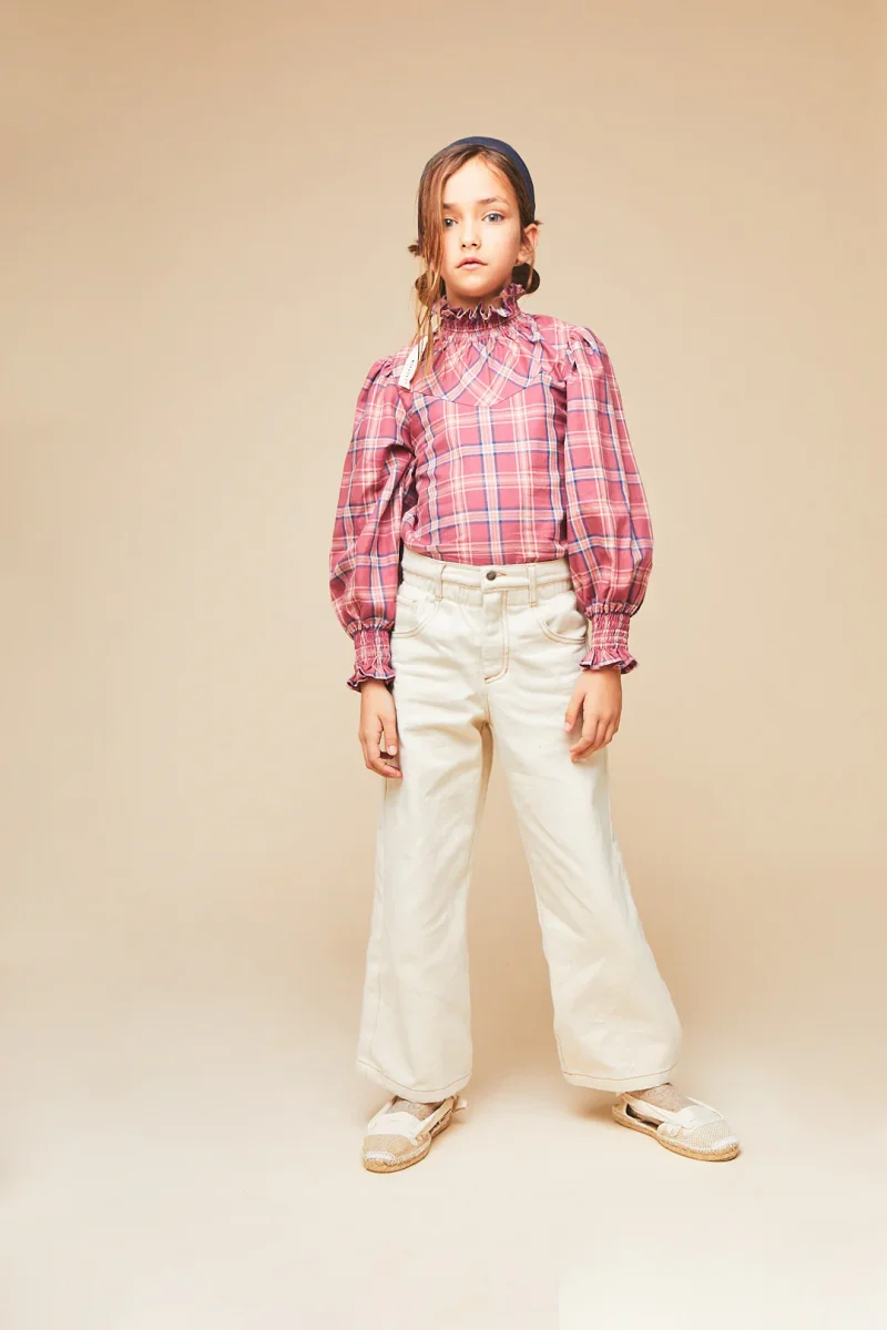 Du tartan girly … oui oui c’est possible avec la Blouse Bella et son joli rose bleuté ! Un imprimé sublimé par le jeu des découpes qui s’amuse avec la géométrie des lignes.