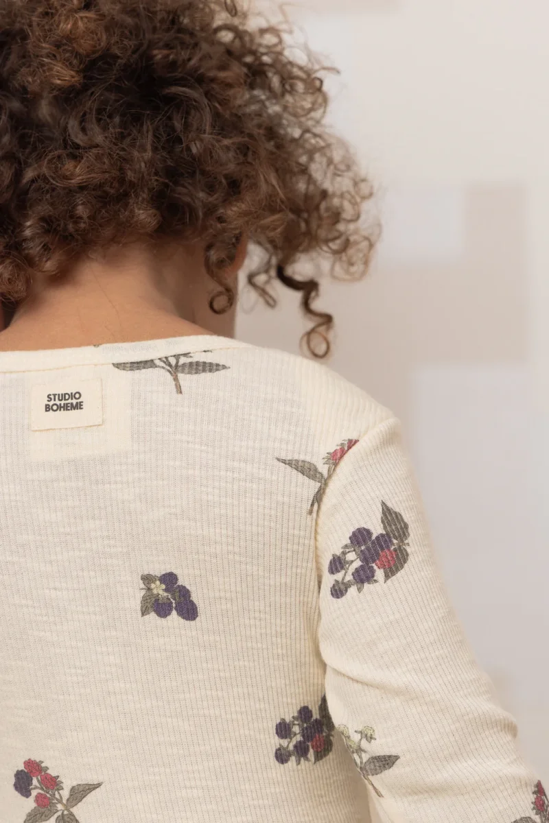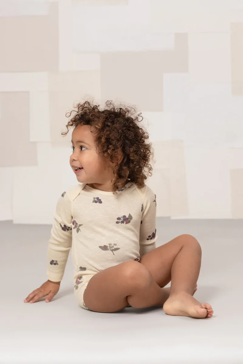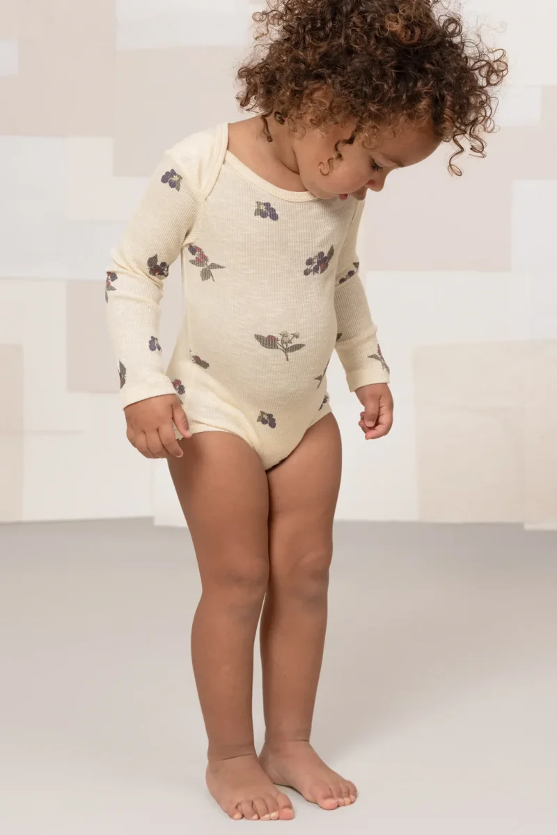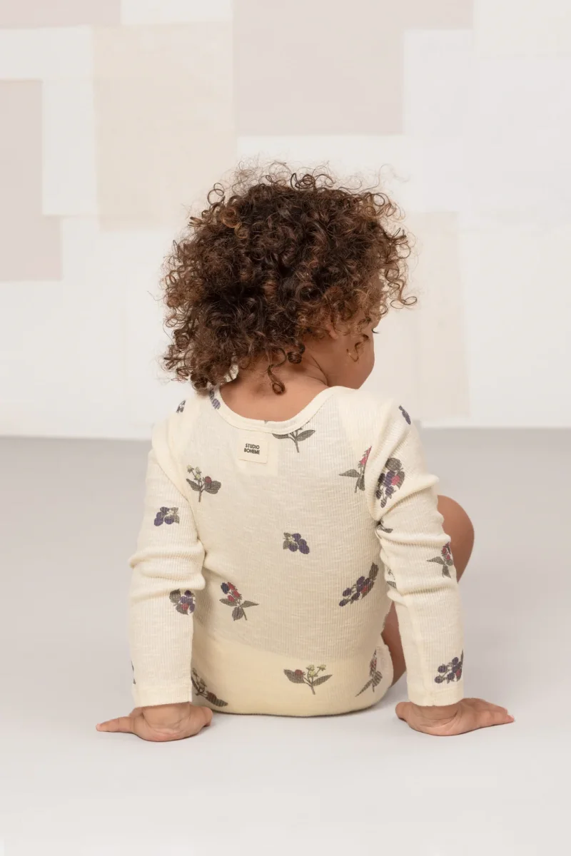 Body à manches longues en jersey côtelé flammé, confectionné en coton biologique certifié.