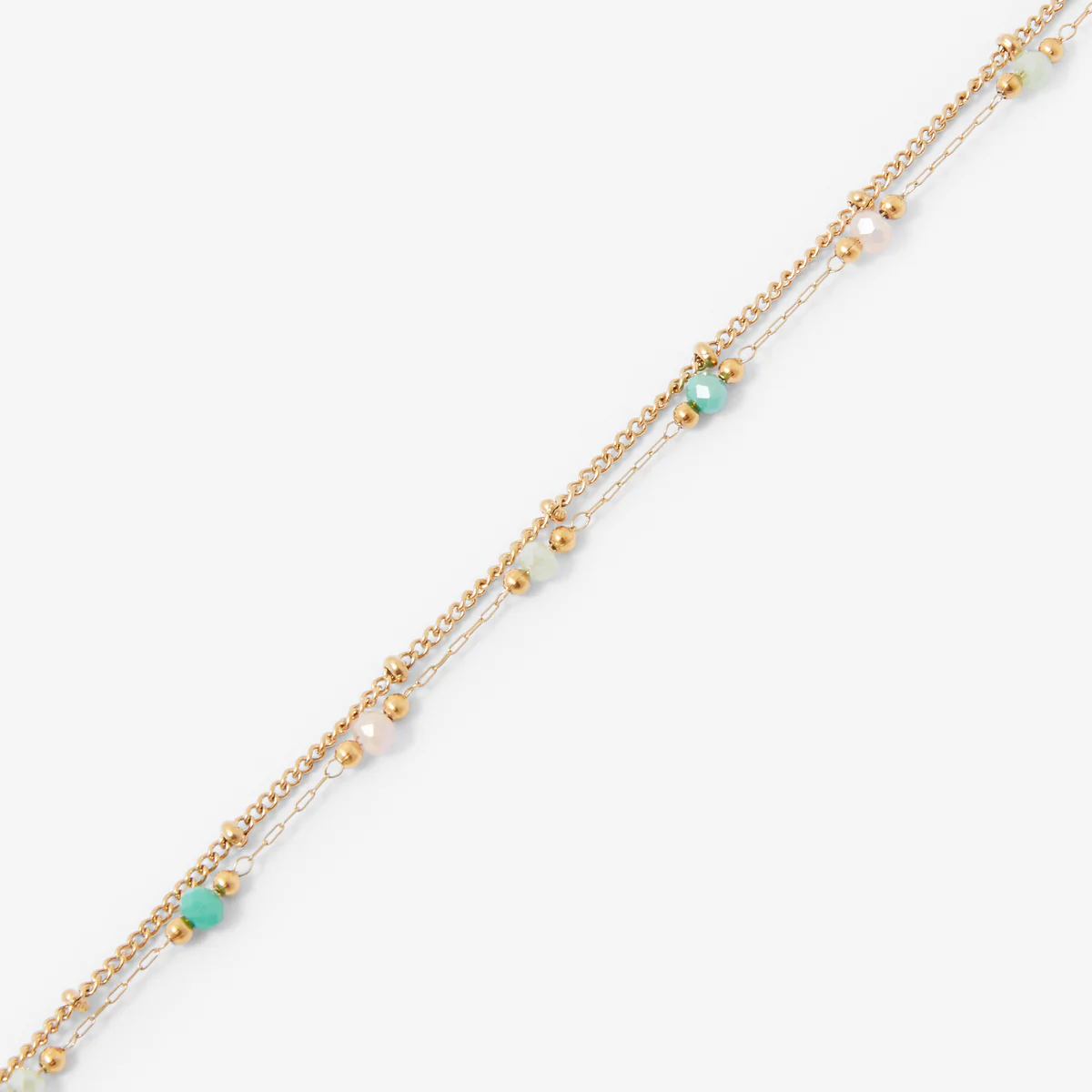 Bracelet chaîne 2 rangs perles facettées vertes acier inoxydable