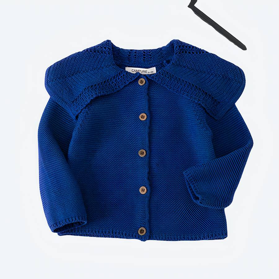 Ce cardigan tricoté pour bébé avec col à pétales aidera votre bébé à améliorer sa conscience et son humeur, le rendant plus calme et plus satisfait. C’est un vêtement élégant et tendance pour les petites filles. Vous pouvez faire vos choix parmi les différentes couleurs disponibles. Les manches sont courtes et les poignets sont bordés d’un joli point de dentelle. Les boutons en bois donnent une touche rustique et classique à ce cardigan. Ce cardigan tricoté pour bébé est facile à entretenir et à nettoyer, et peut être lavé à la machine.