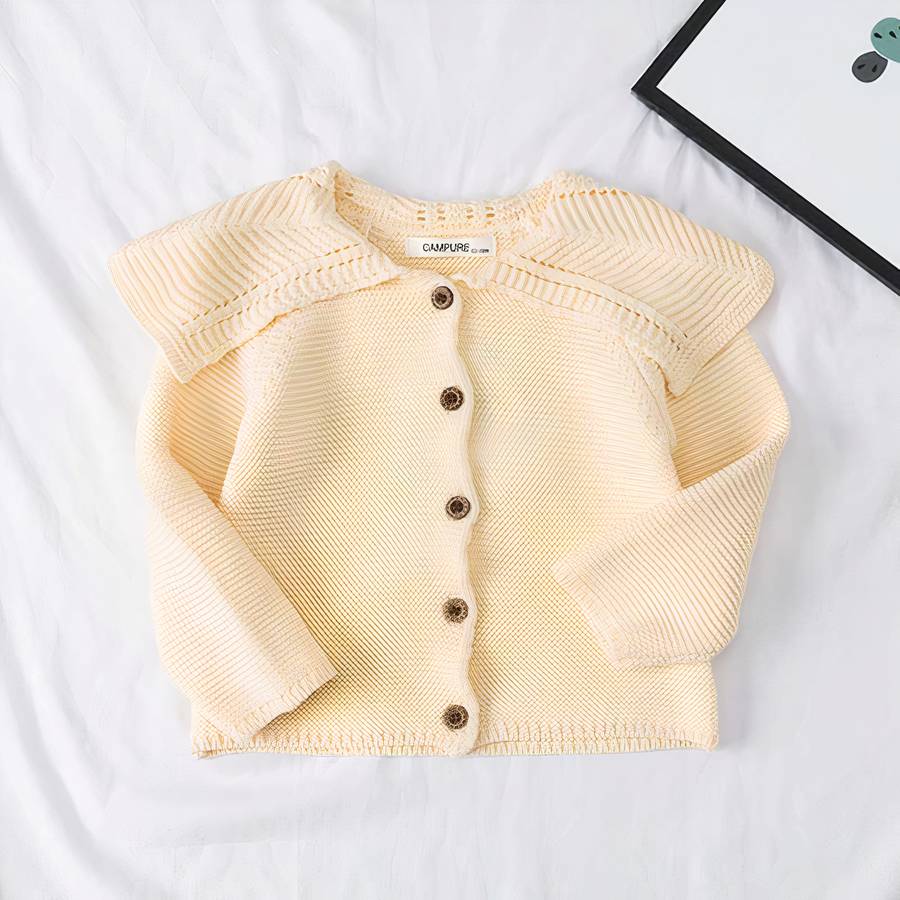 Cardigan tricoté pour bébé avec col à pétales