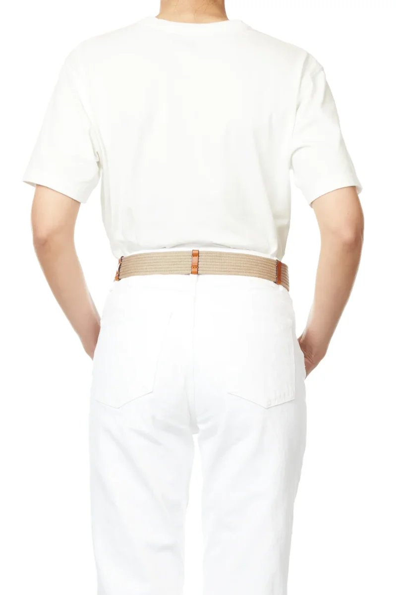 Coton garnie de cuir. Ceinture réglable. Porté hanche ou taille haute. Dimensions (longueur de la boucle au trou du milieu) : XS : 75 cm S : 85cm M : 95cm