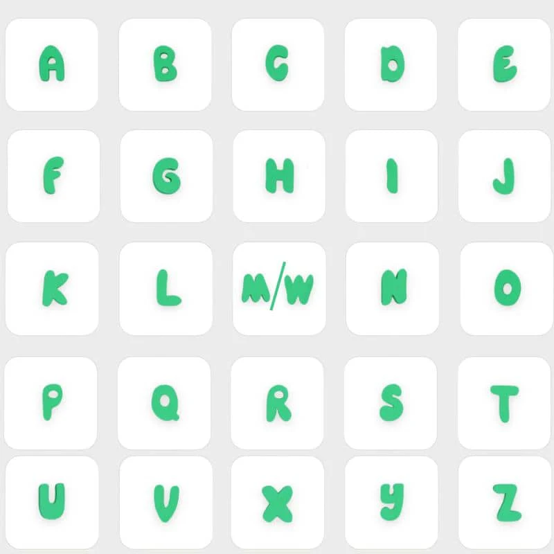 | Charms (lettres et symboles) | A, B, C, D, E, F, G, H, I, J, K, L, M / W, N, O, P, Q, R, S, T, U, V, X, Y, Z |