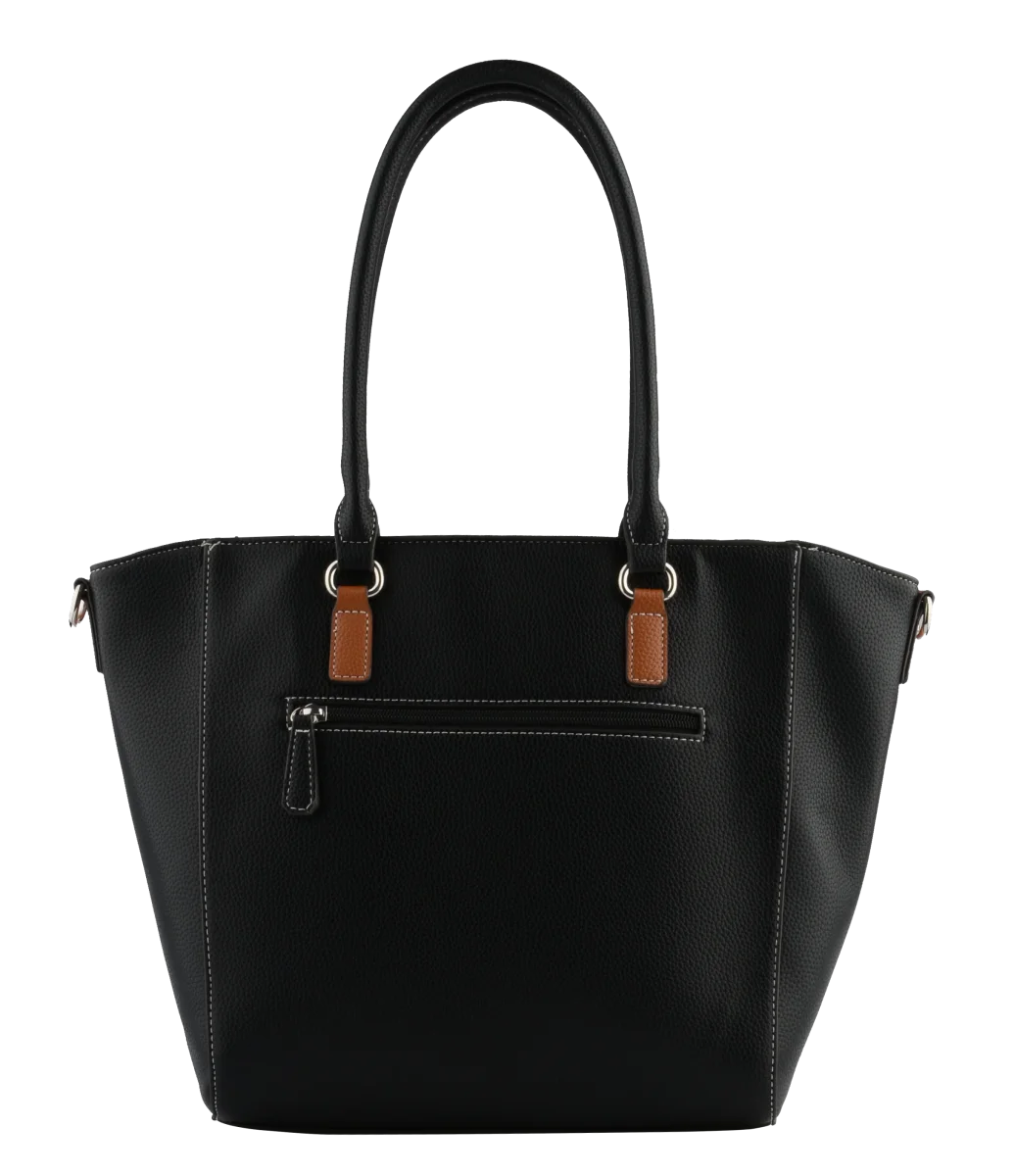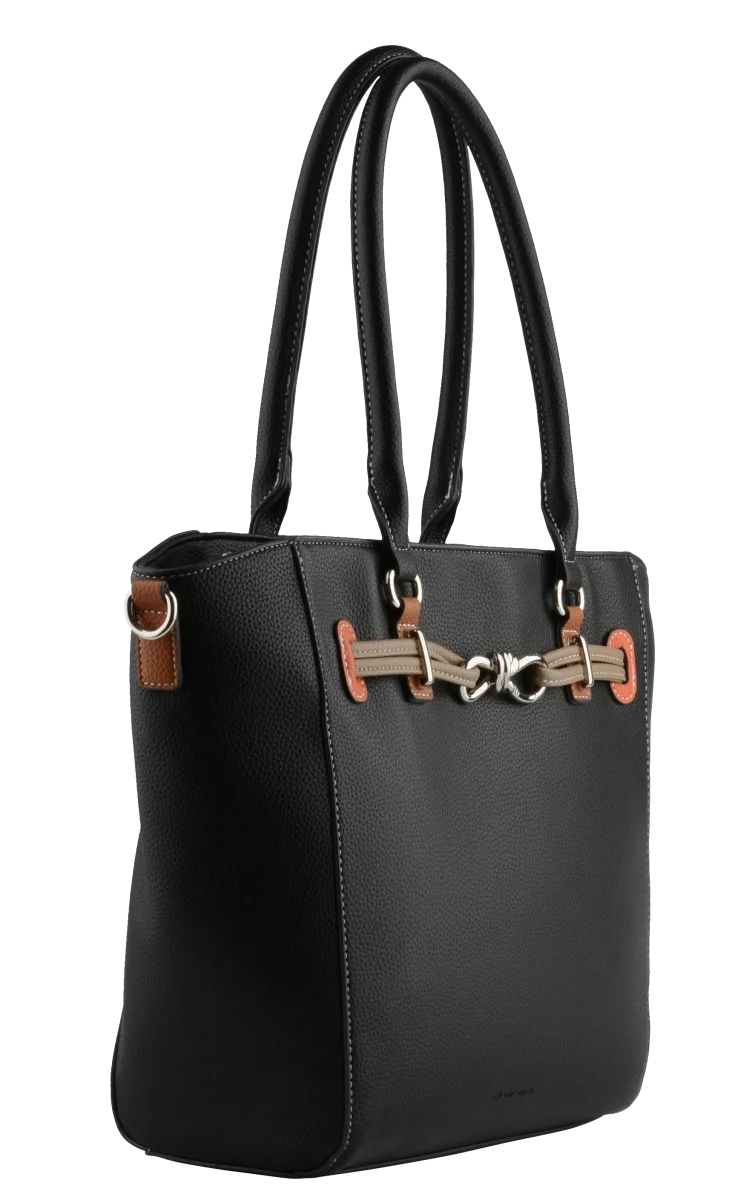 Le sac Clarence, en format cabas porté épaule, se distingue par son design bicolore raffiné et ses détails métallisés subtils qui apportent une touche chic et contemporaine. Spacieux et pratique, il vous accompagne avec élégance dans toutes vos journées, du bureau aux sorties.