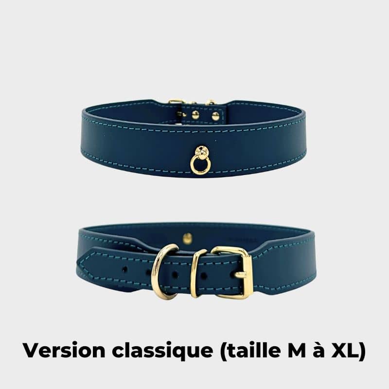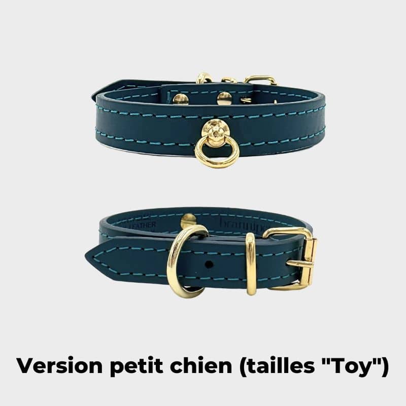 Confectionné à Milan avec du cuir italien, le mélange des boucles dorées associées à la couleur bleue rendront toutes les balades de votre chien dignes d’un défilé de mode !