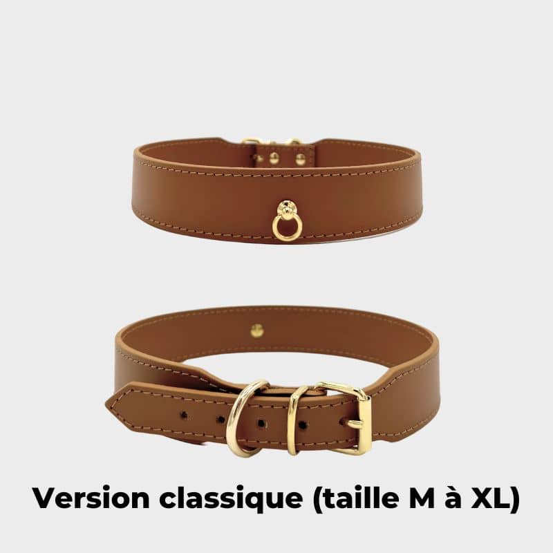 Sa matière en cuir naturel s’adaptera parfaitement à la morphologie du cou de votre chien et prendra un aspect légèrement plus souple avec le temps.
