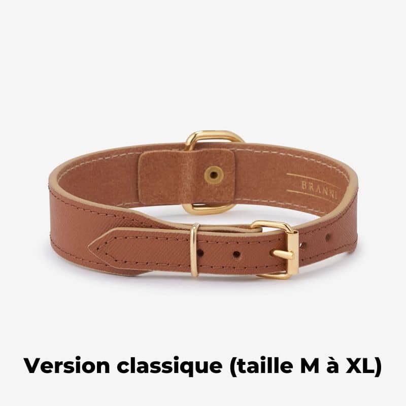 Sa matière en cuir naturel s’adaptera parfaitement à la morphologie du cou de votre chien et prendra un aspect légèrement plus souple avec le temps.