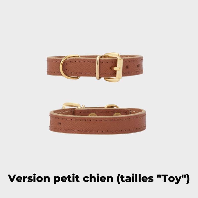Cet accessoire pour chien deviendra un intemporel de la garde robe de votre toutou grâce à sa couleur marron, un classique indémodable ! À l’intérieur se trouve un renfort supplémentaire en cuir de vachette pour une plus grande durabilité et son fermoir se compose d’une boucle dorée, assorti à l’anneau qui sert à accrocher votre laisse.