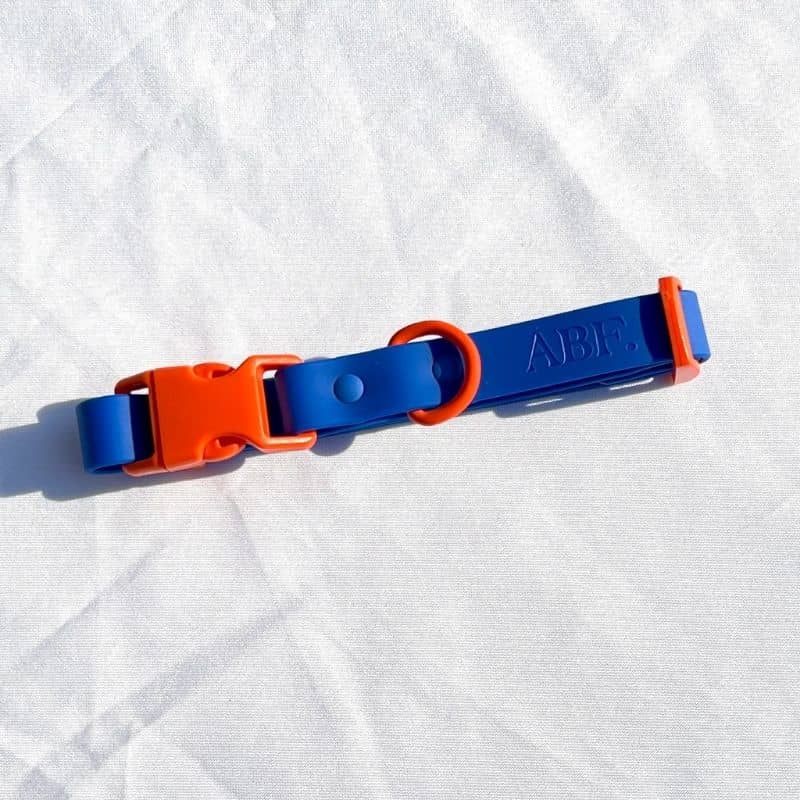 Ce collier pour chien « bicolore bleu/orange » de la marque américaine Approved by Fritz vous permet de promener votre chien avec style ! Réalisés à partir de sangle de nylon enduite de PVC, une matière plus durable que le cuir et similaire au biothane, il est waterproof et résistant.