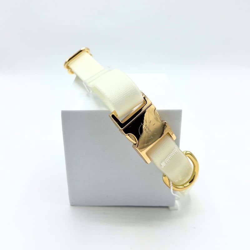 Le collier pour chien phosphorescent « Lunar glow » de la marque américaine Shop Sunny Tails vous permet de promener votre chien peu importe la météo grâce à sa matière imperméable. Il est confectionné à partir d’une sangle 100% vegan enduite de PVC – une matière plus durable que le cuir et similaire au biothane – et est également résistant (il a été testé pour résister à une traction de 300kg !). Une élégante boucle dorée permet d’ouvrir et de fermer rapidement le collier.