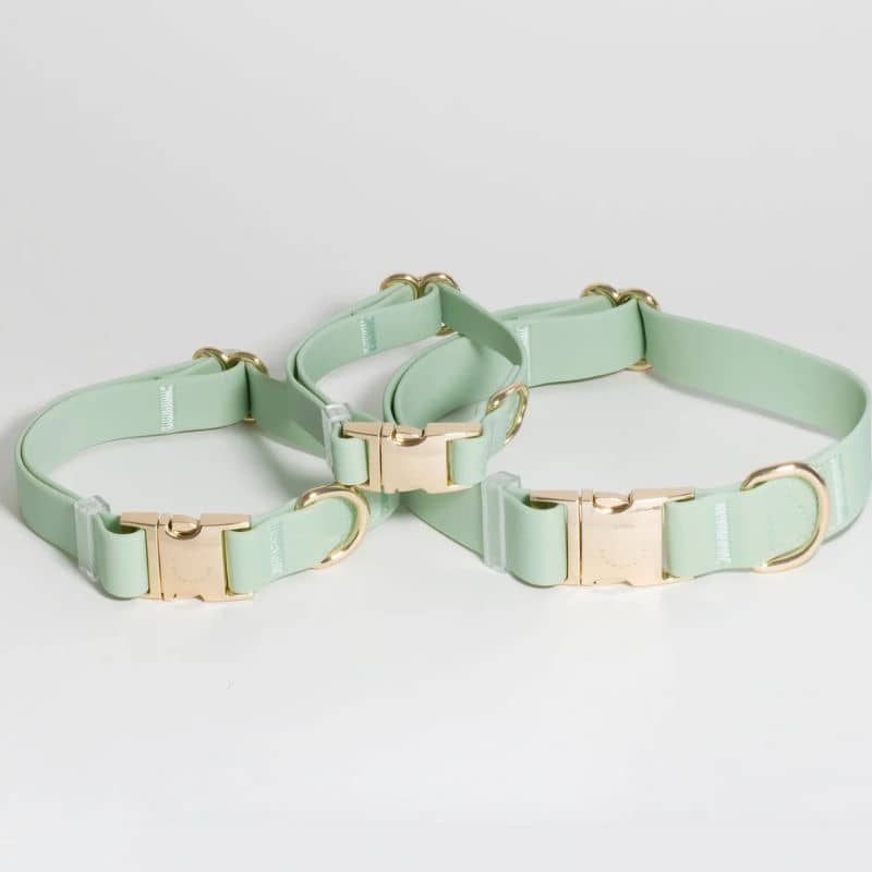 Retrouvez ici toute la collection de produits waterproof en pistache ! (Laisse, collier, harnais ect…)