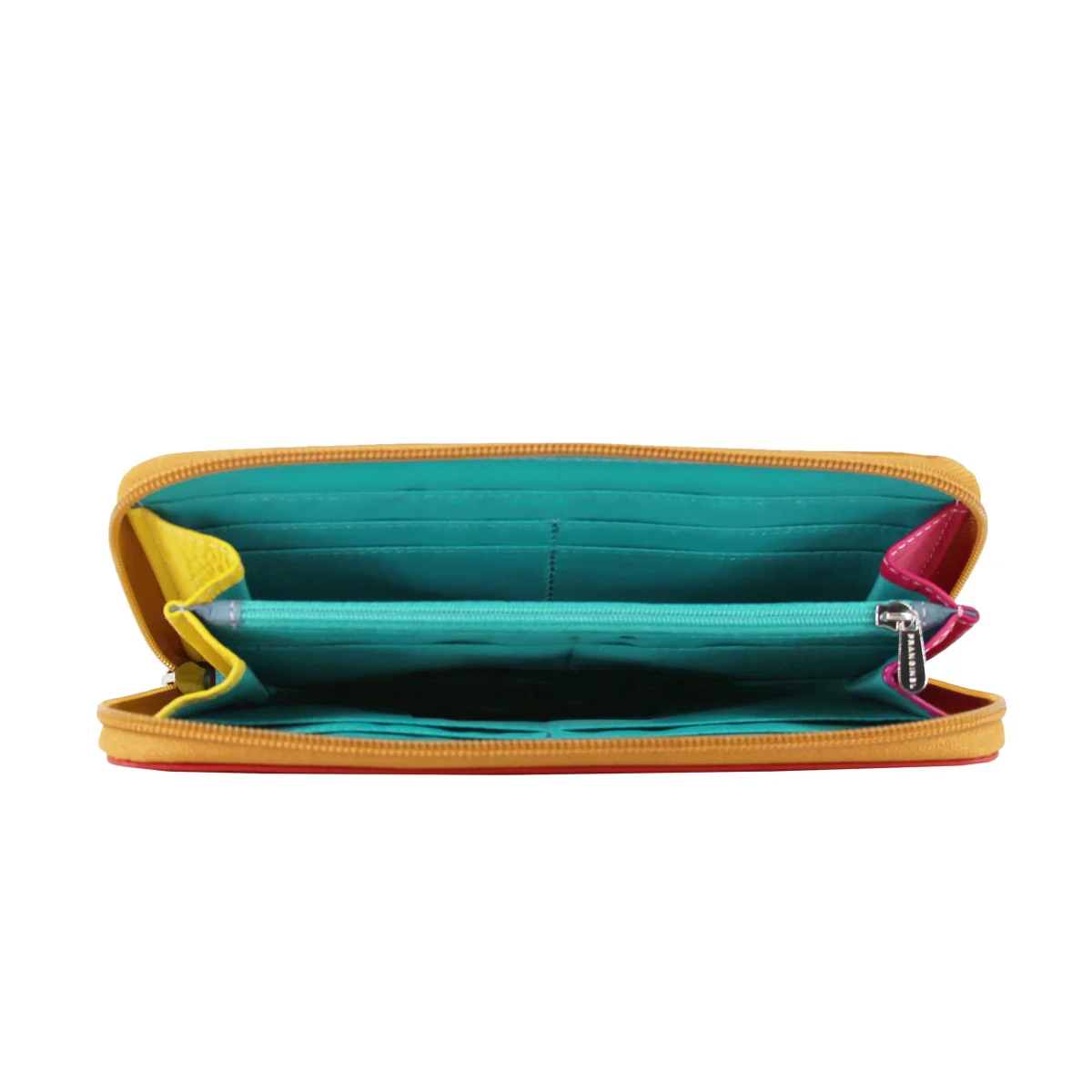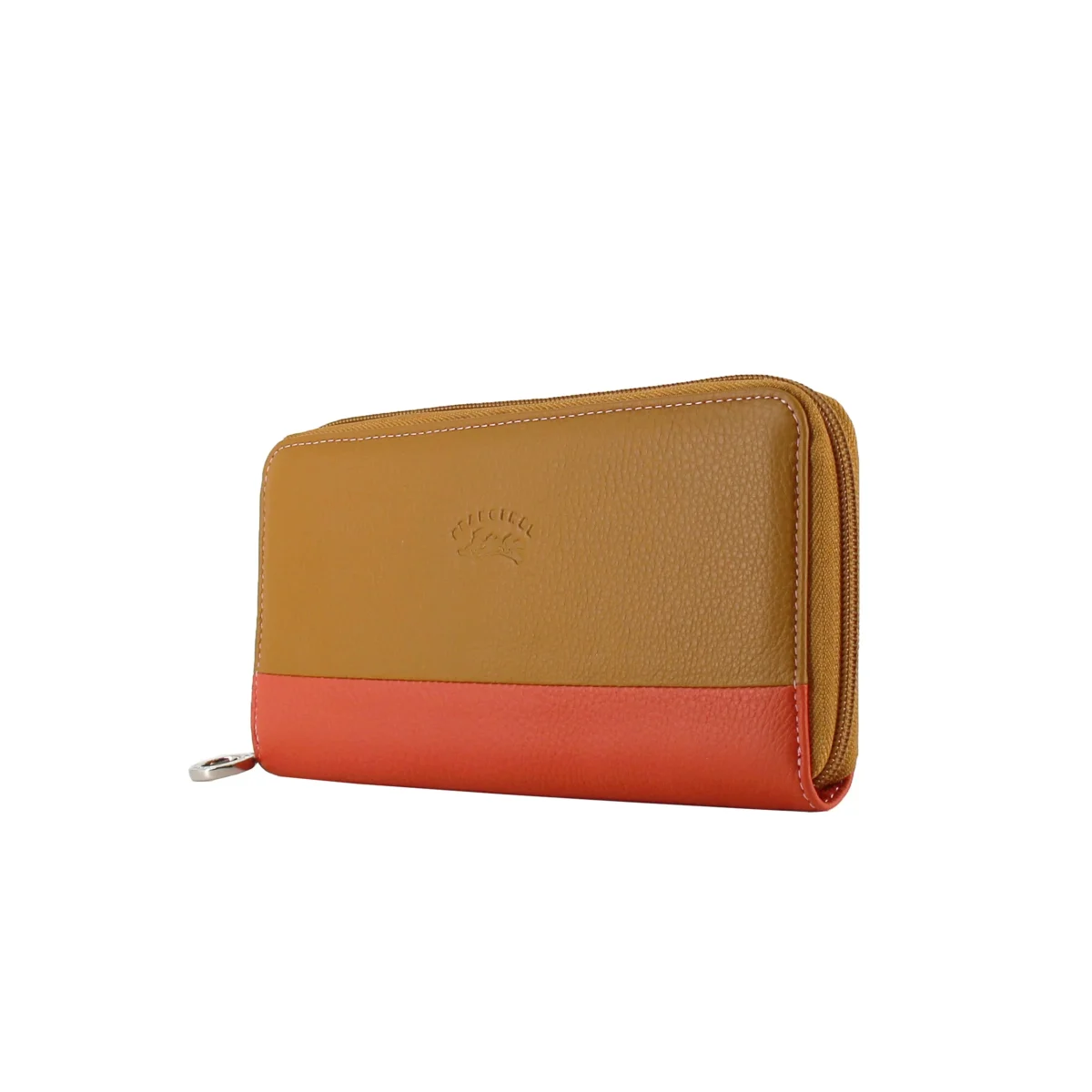 Des petits accessoires originaux avec des jolies combinaisons de couleurs en cuir de vachette foulonné effet grainé. Détails : fermeture zippée 12 fentes pour cartes emplacements pour billets et reçus compartiment zippé pour monnaie Dimensions : 20,5 x 10 x 2 cm Disponible en noir, rouge, turquoise et camel. Référence : 59911 – Camel