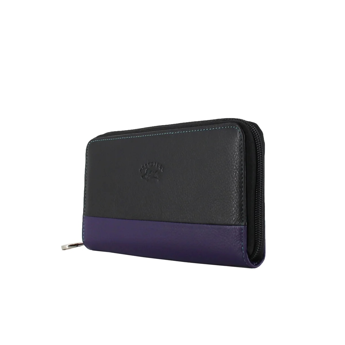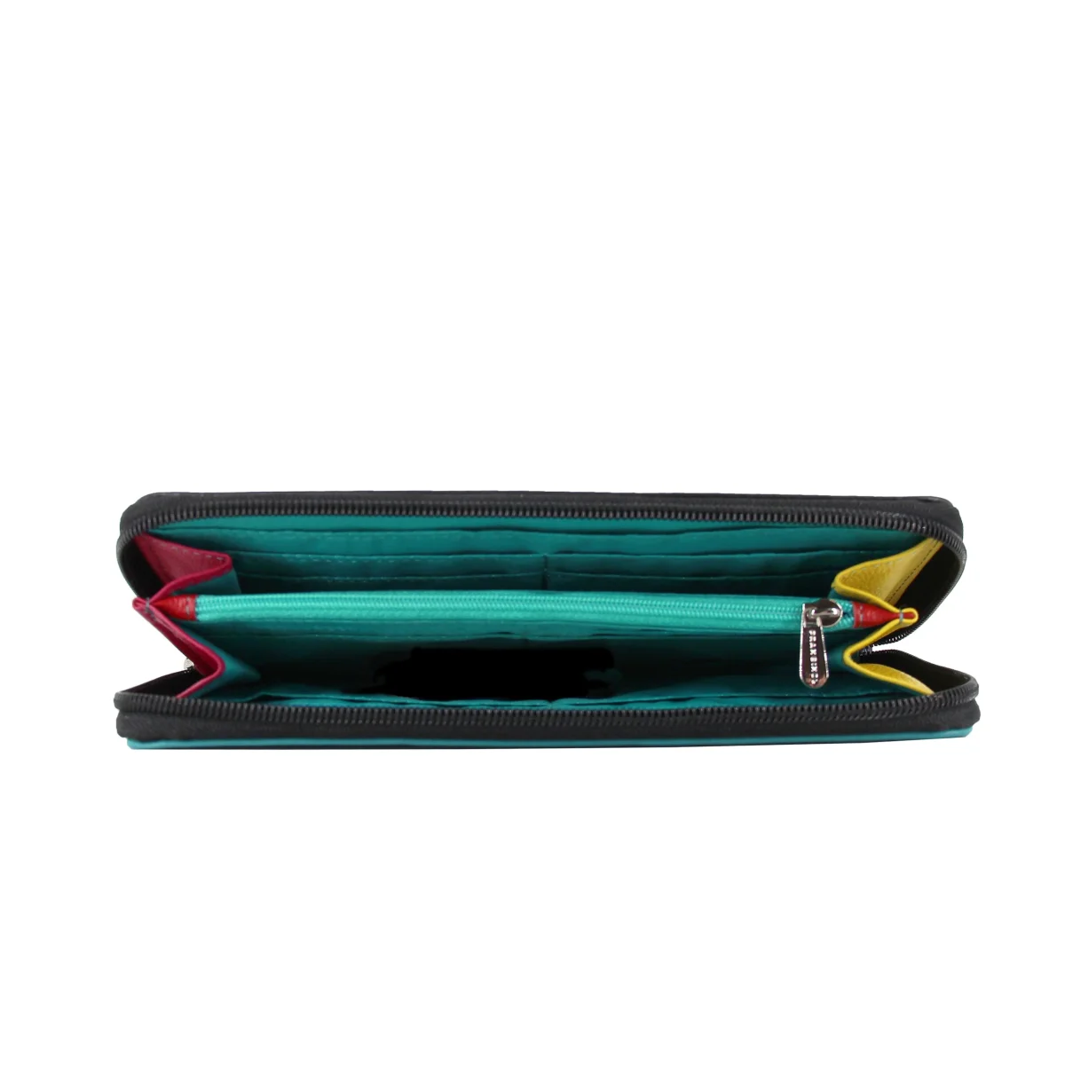 Des petits accessoires originaux avec des jolies combinaisons de couleurs en cuir de vachette foulonné effet grainé. Détails : fermeture zippée 12 fentes pour cartes emplacements pour billets et reçus compartiment zippé pour monnaie Dimensions : 20,5 x 10 x 2 cm Disponible en noir, rouge, turquoise et camel. Référence : 59911 – Noir