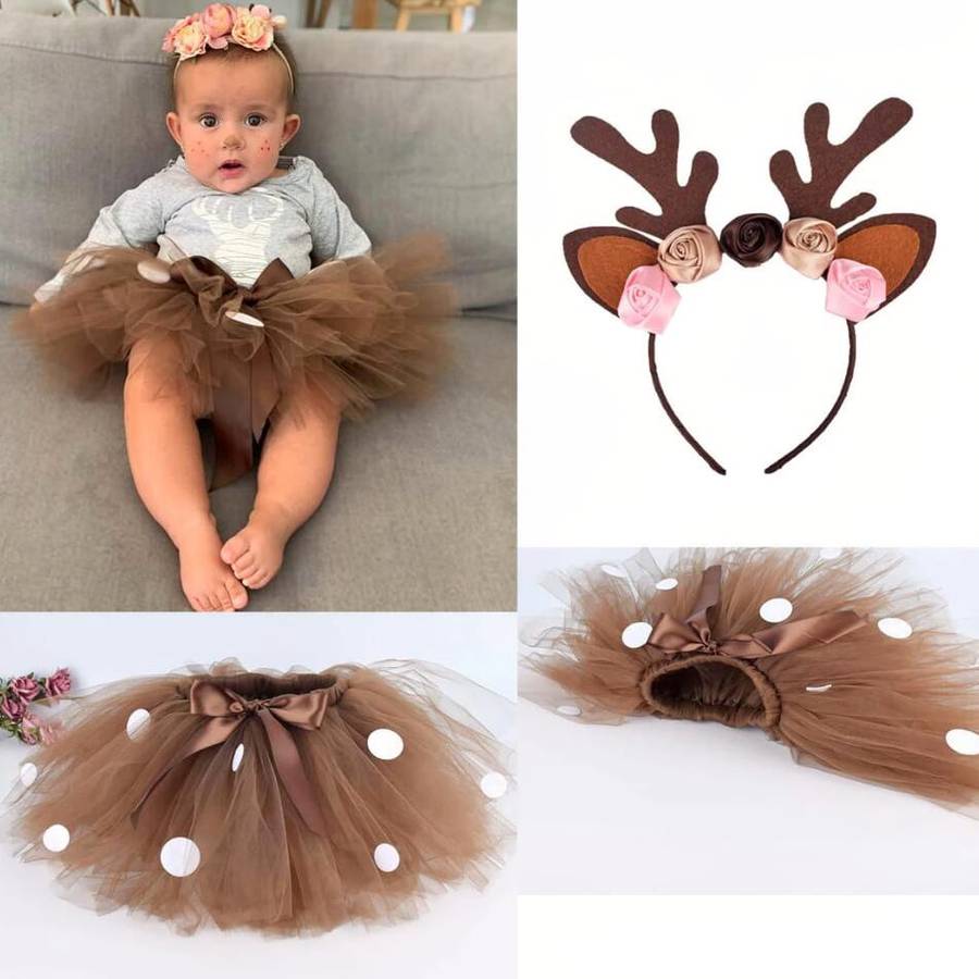 Déguisement bébé jupe en tulle marron avec serre-tête bois de cerf