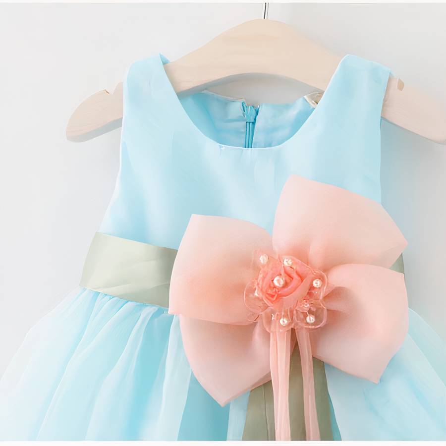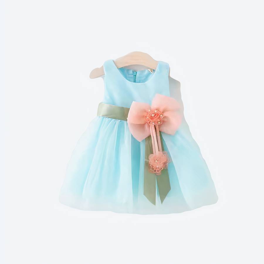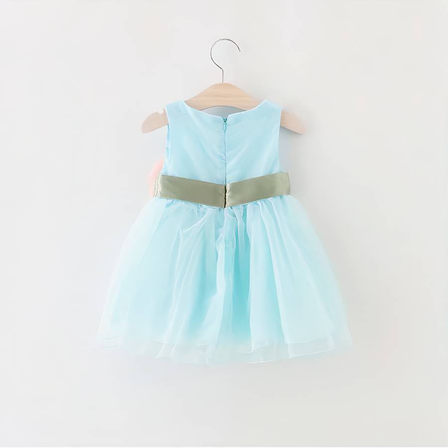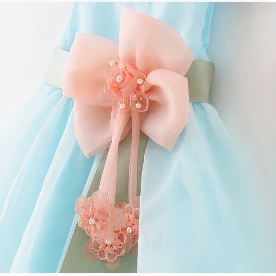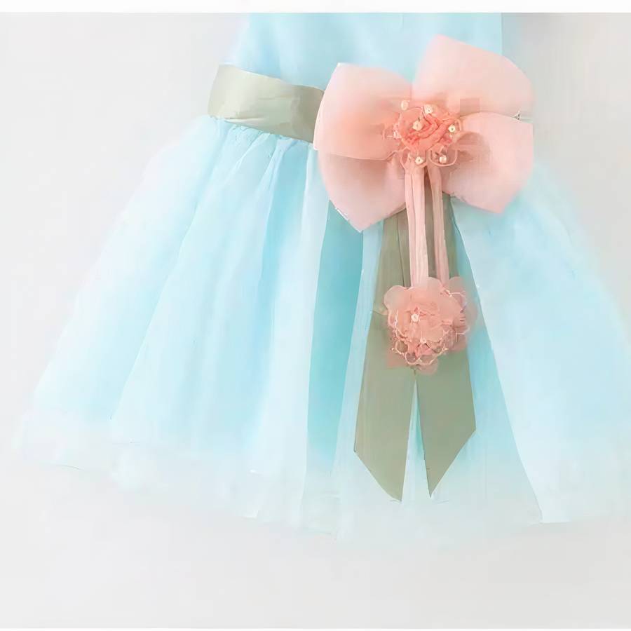 Déguisement bébé robe bleue avec grosse fleur à la taille pour déguisement de princesse