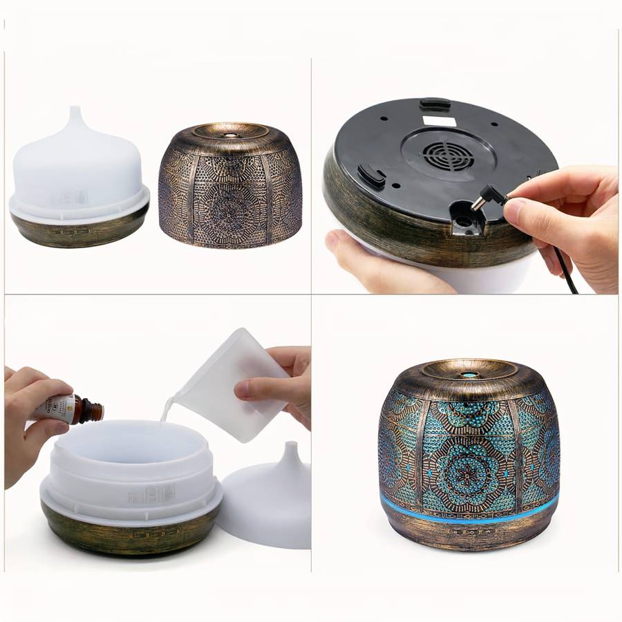 Nous vous proposons ce diffuseur d’huile essentielle en bronze qui possède une capacité de réservoir de 500 ml. Il est très léger et vous pouvez le transporter et le placer facilement dans la chambre de votre bébé. Ce diffuseur est l’accessoire parfait pour rafraîchir et humidifier l’air ambiant dans une pièce. Il vous suffira de tourner le bouton pour choisir la puissance de diffusion souhaitée, vous pourrez ainsi créer une atmosphère selon vos envies. Ce diffuseur d’huile essentielle en bronze est donc un produit idéal pour profiter des bienfaits des huiles essentielles tout en décorant votre intérieur.