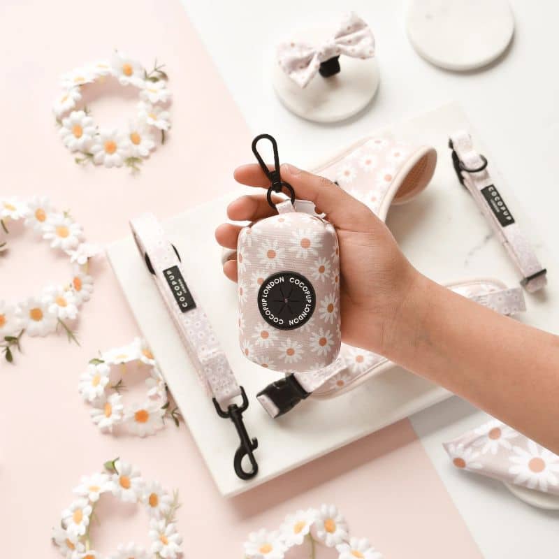 Vos promenades canines ne manqueront pas de style grâce au distributeur de sacs à déjection “marguerites daisy” de la marque Cocopup London et son motif fleuri indémodable !