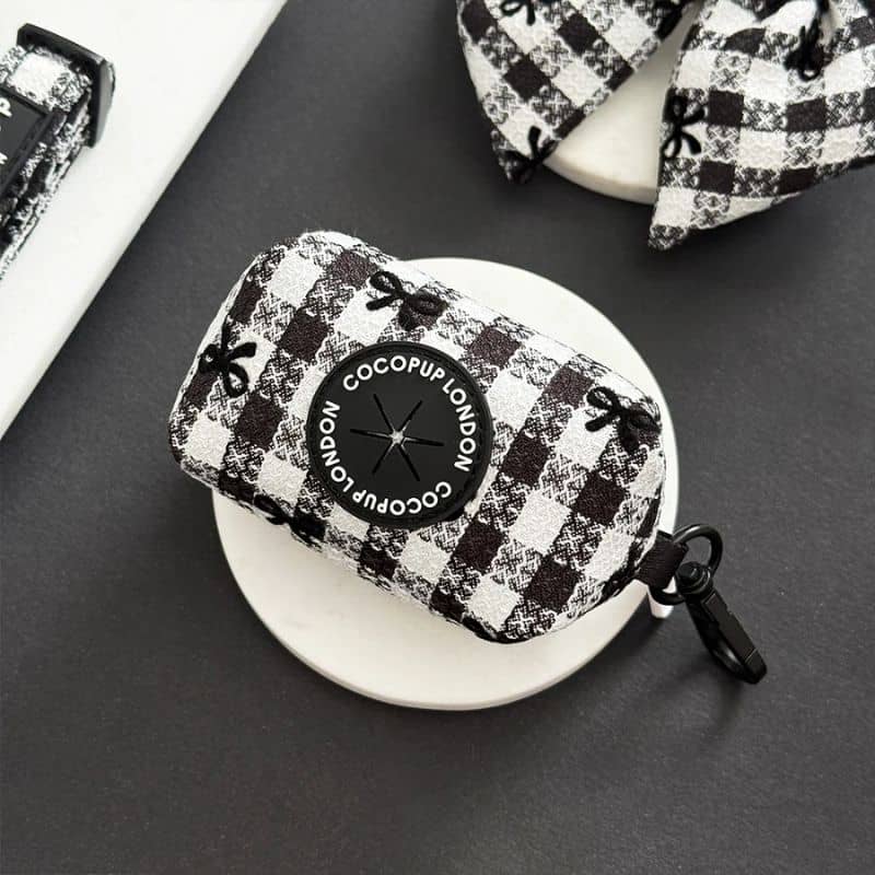 Apportez du peps à vos promenades grâce au distributeur de sacs à déjection “Pup in Paris » au motif vichy noir et blanc de la marque Cocopup London. Pratique, mignon et assorti à toute la collection Pup in Paris, il vous accompagne partout avec style.