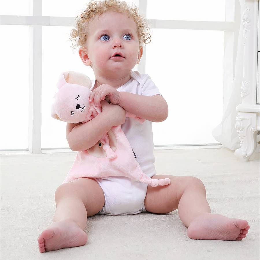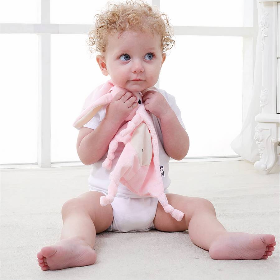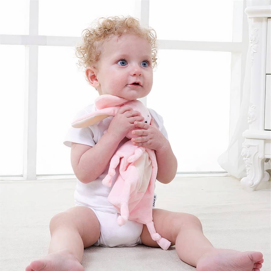 Doudou lapin rose en peluche pour bébés