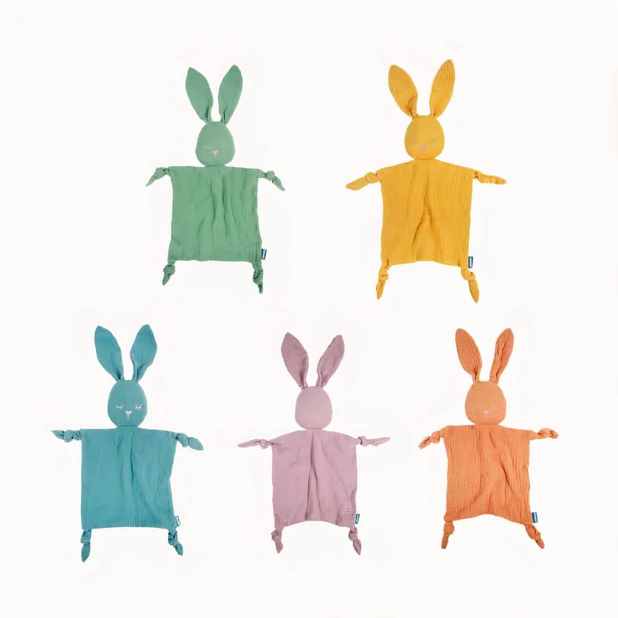 Doudou lapinou en coton coloré pour bébé