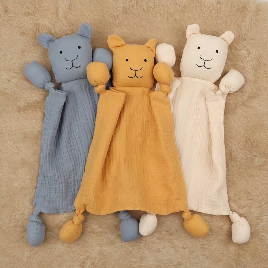 Nous vous proposons ce doudou pour bébé en forme d’ours qui est fait en coton de très bonne qualité. Il est doux et moelleux pour se blottir contre votre bébé la nuit. Il est très léger et conviendra certainement aux petites mains de votre bébé. De plus, vous pouvez choisir parmi les différentes couleurs disponibles. Sa couleur crème avec des touches de brun et de beige est très douce et ses grands yeux noirs le rendent attachant. De plus, ce doudou est livré avec une étiquette personnalisée qui comporte le prénom de votre enfant et une phrase douce pour lui…