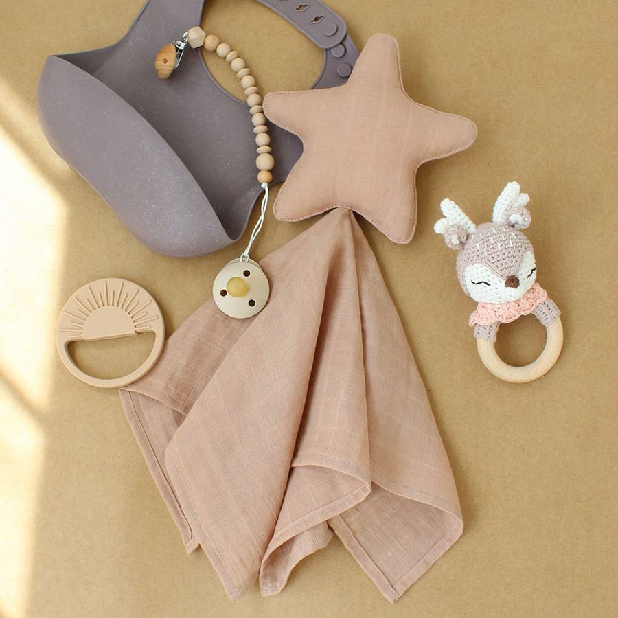Ce doudou pour nouveau-né est un produit unique qui offre à votre bébé une sensation de douceur et de confort inégalée. Fabriqué en 100% coton ultra doux, il est conçu pour s’adapter parfaitement à la peau sensible de votre bébé. Sa texture légère et douce est agréable au toucher et procurera à votre bébé un sentiment de sécurité et de bien-être. Le design mignon et attrayant ravira les yeux de votre bébé et sa couleur vive ajoutera une touche d’amusement à son univers. La taille parfaite du doudou facilitera le transport et lui permettra de l’emporter partout où il va.…