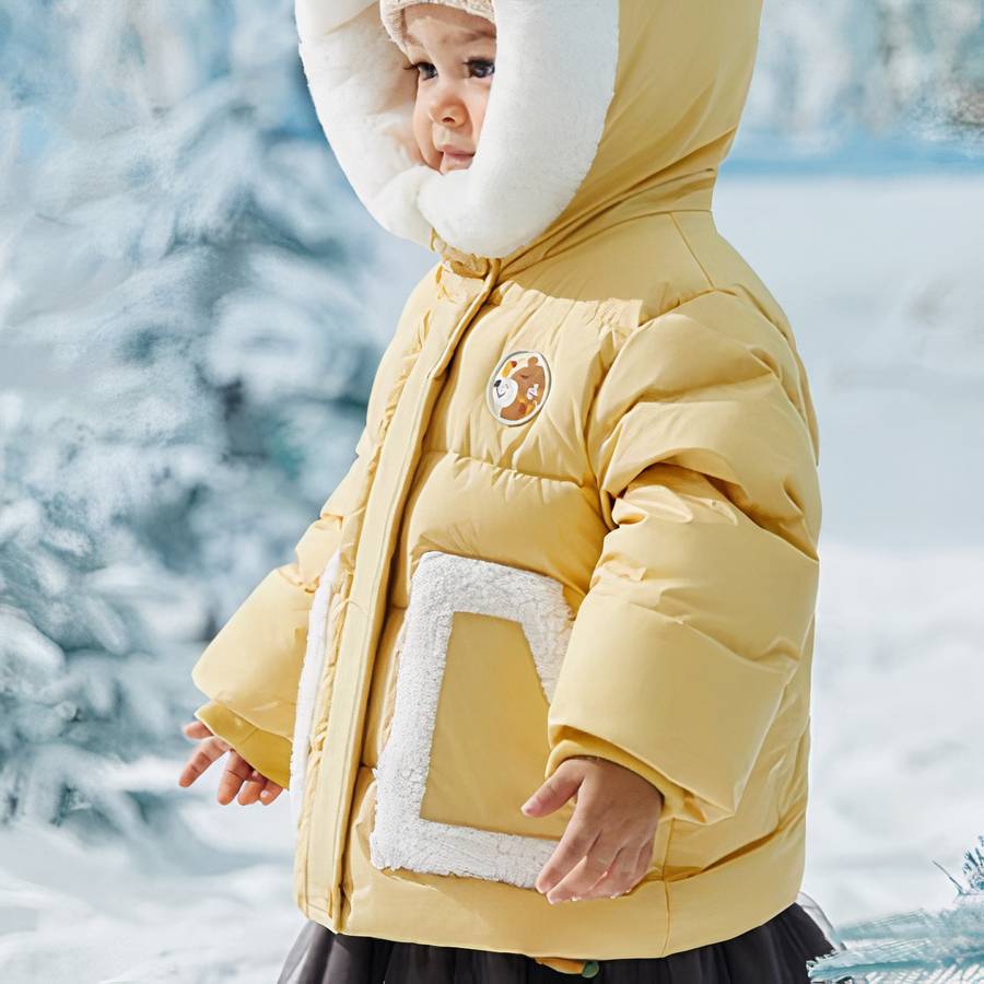Doudoune bébé fille douillette jaune moutarde avec capuche