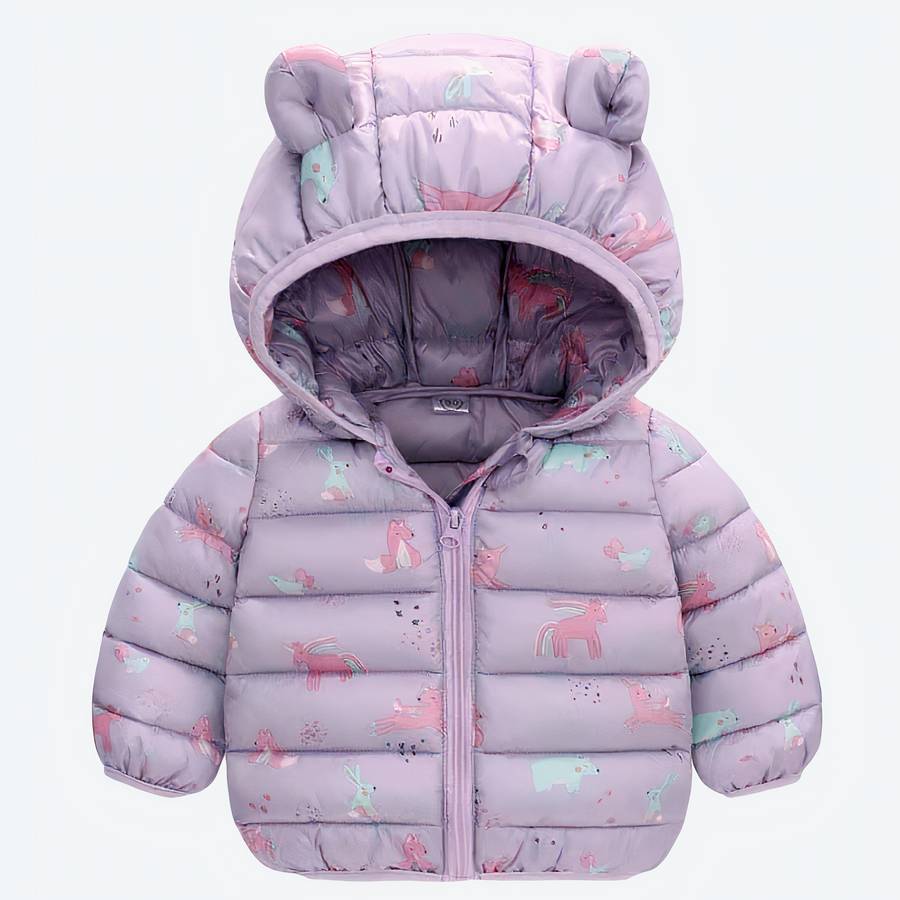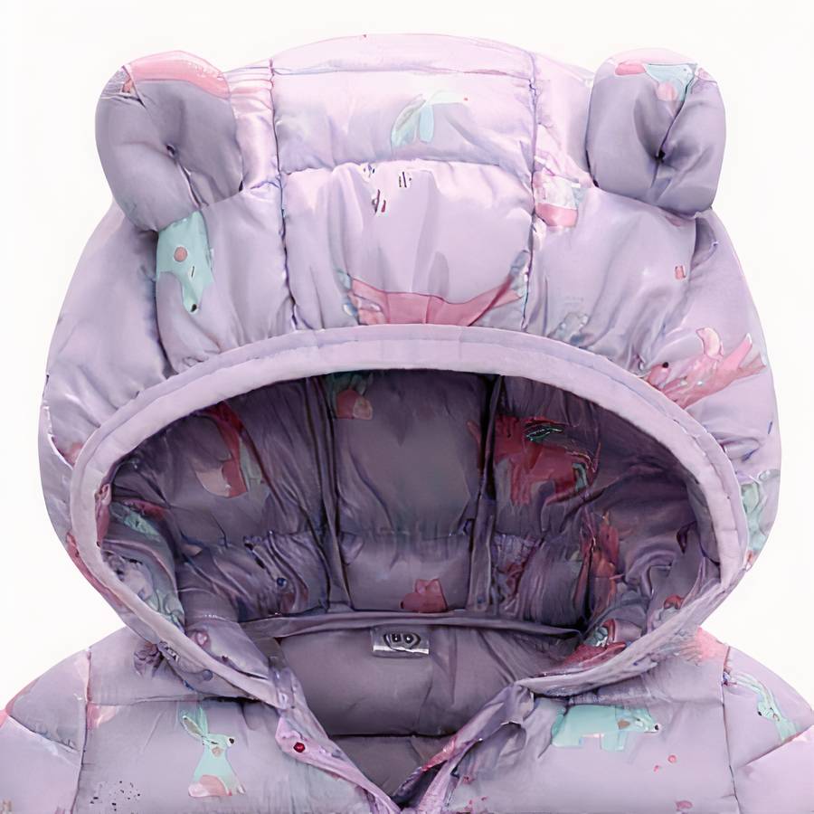 Doudoune bébé fille violette avec capuche à petites oreilles