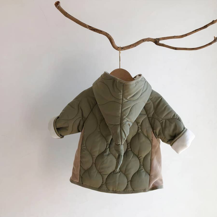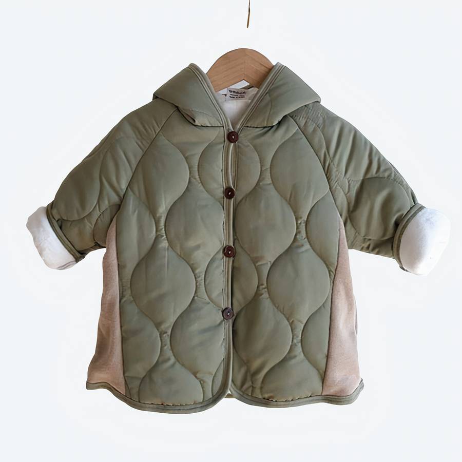 Cette doudoune bébé garçon verte kaki pour petit garçon est parfaite pour les journées froides et venteuses. Confectionnée dans un tissu doux et résistant, elle offre une protection optimale contre le froid et les intempéries. La capuche pointue ajoute une touche de style à la tenue de votre enfant.